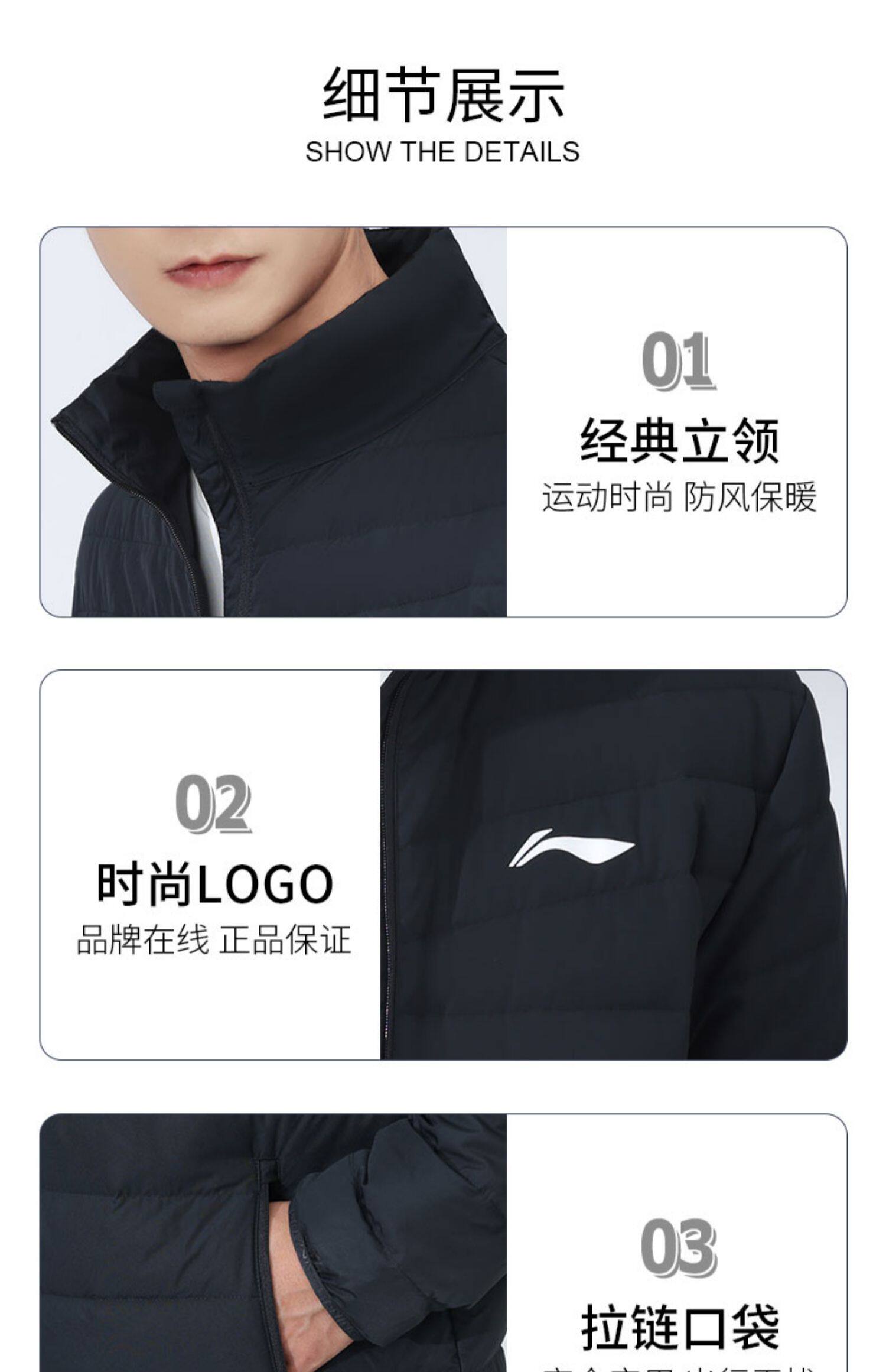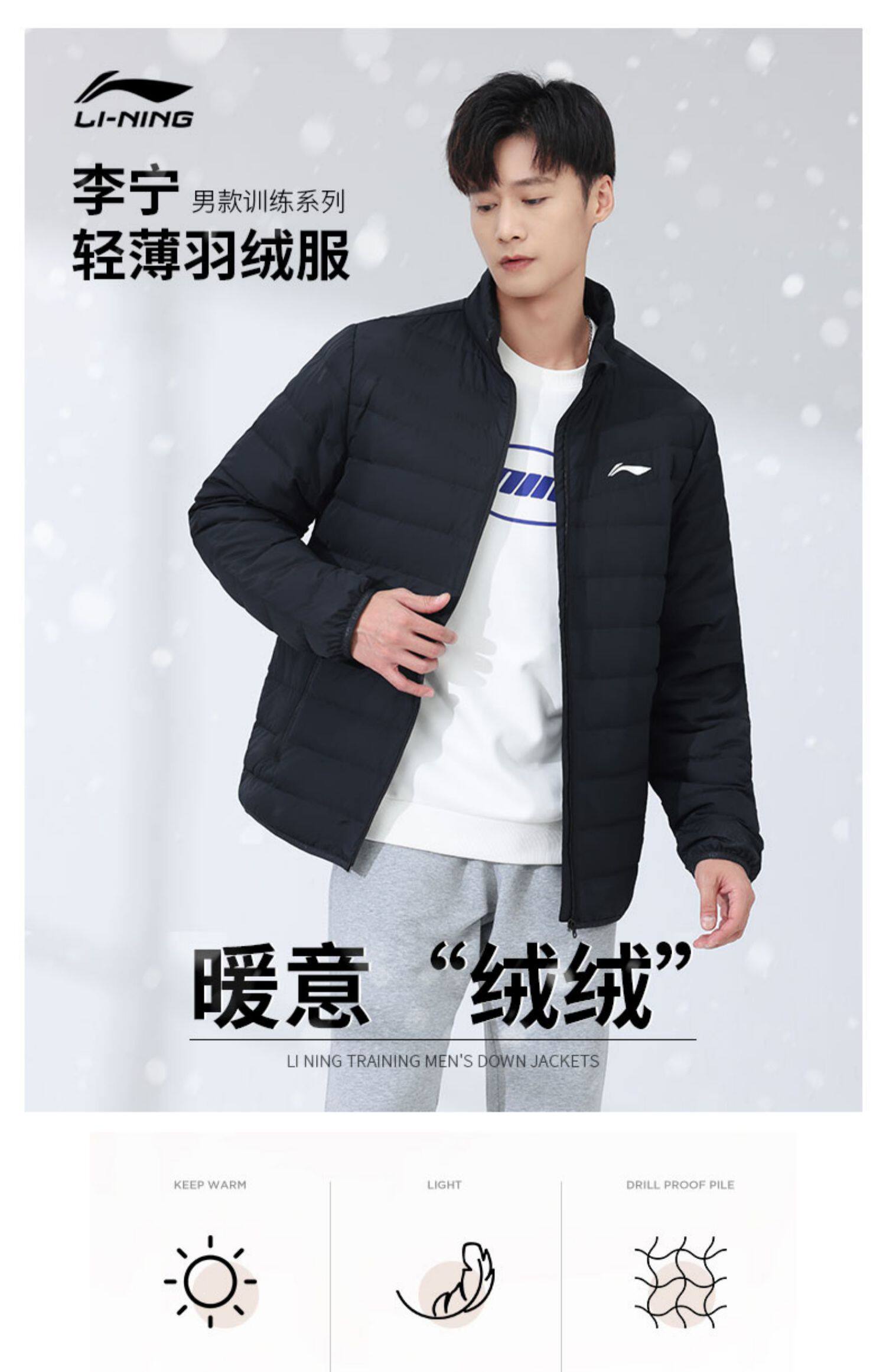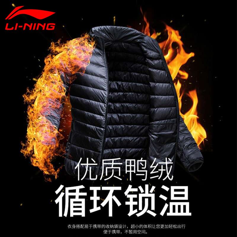 Li Ning, зимний бархатный пуховик, легкая и тонкая спортивная короткая куртка для отдыха, 2023, утиный пух