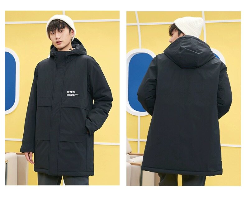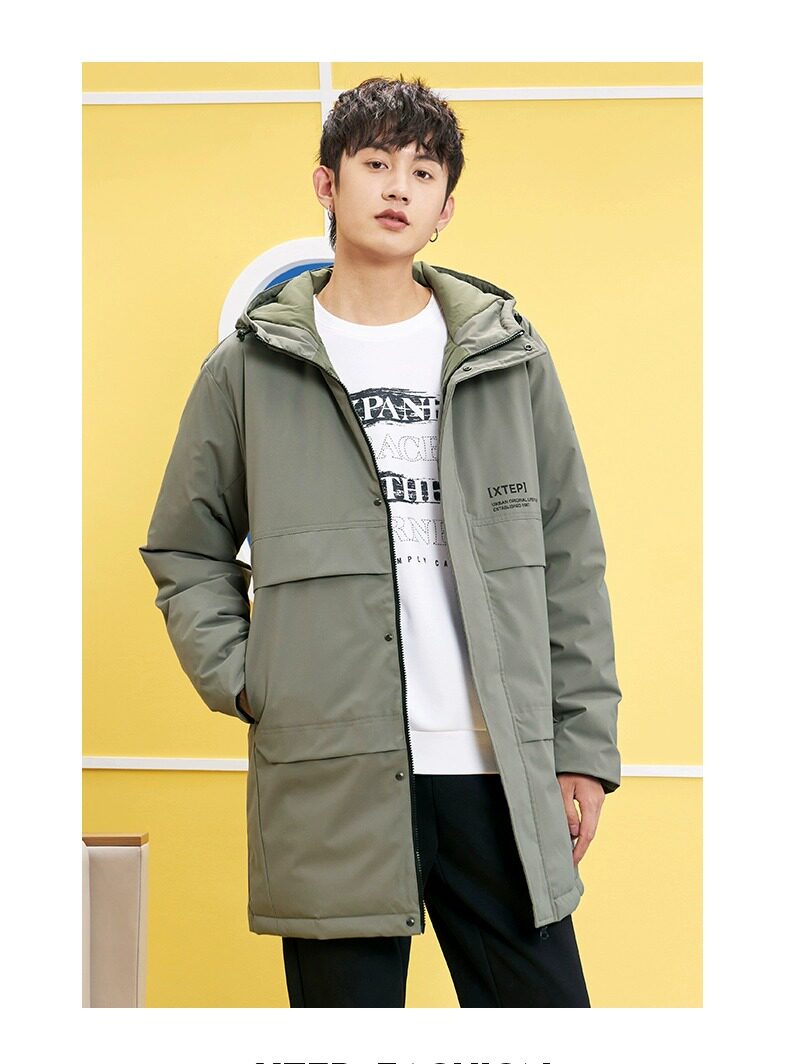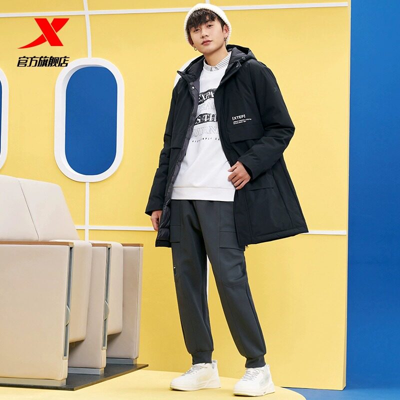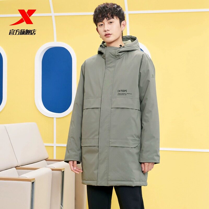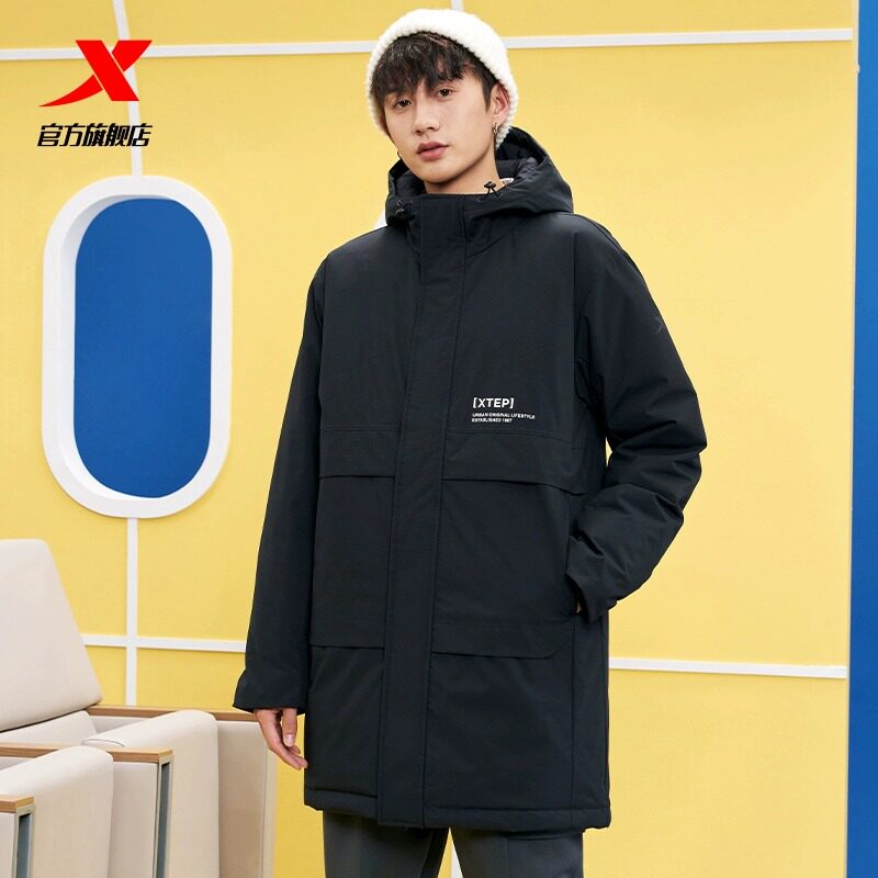 Xtep, длинный зимний пуховик для отдыха, удерживающая тепло водонепроницаемая спортивная куртка, средней длины, увеличенная толщина