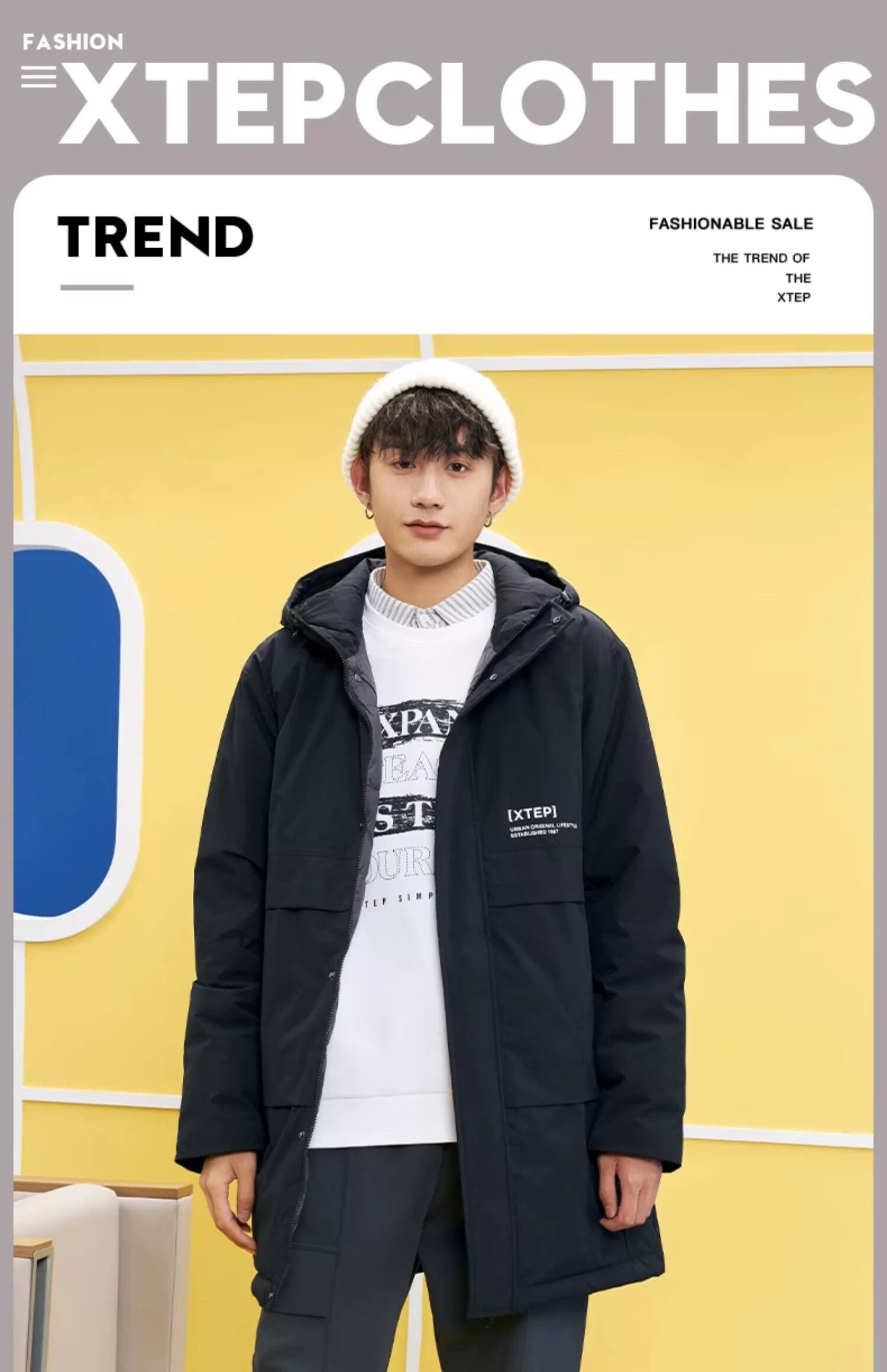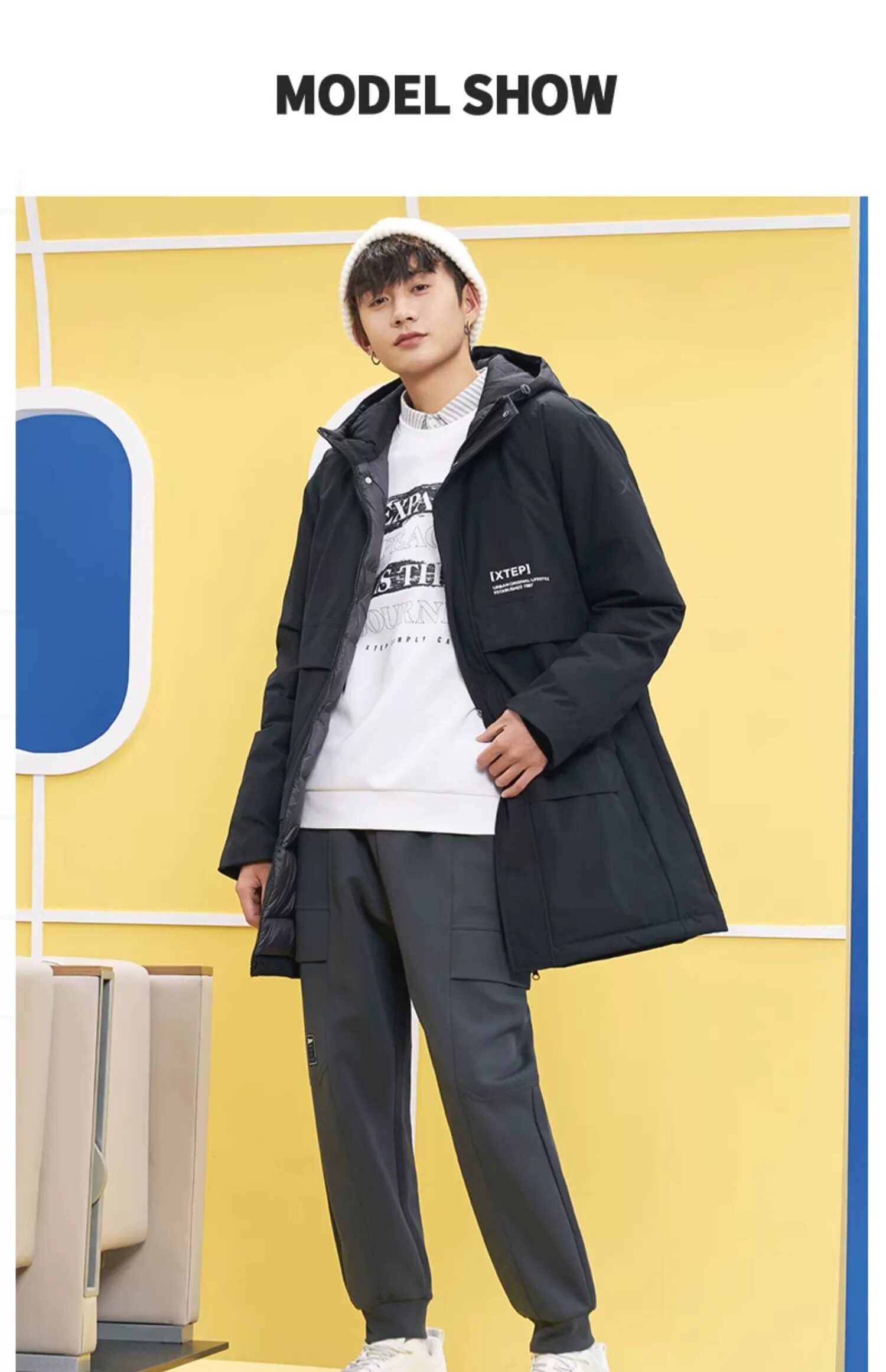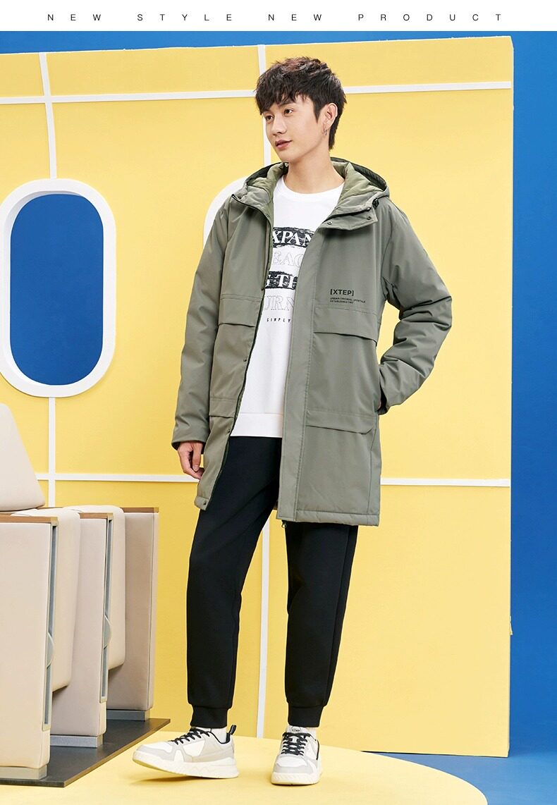 Xtep, длинный зимний пуховик для отдыха, удерживающая тепло водонепроницаемая спортивная куртка, средней длины, увеличенная толщина