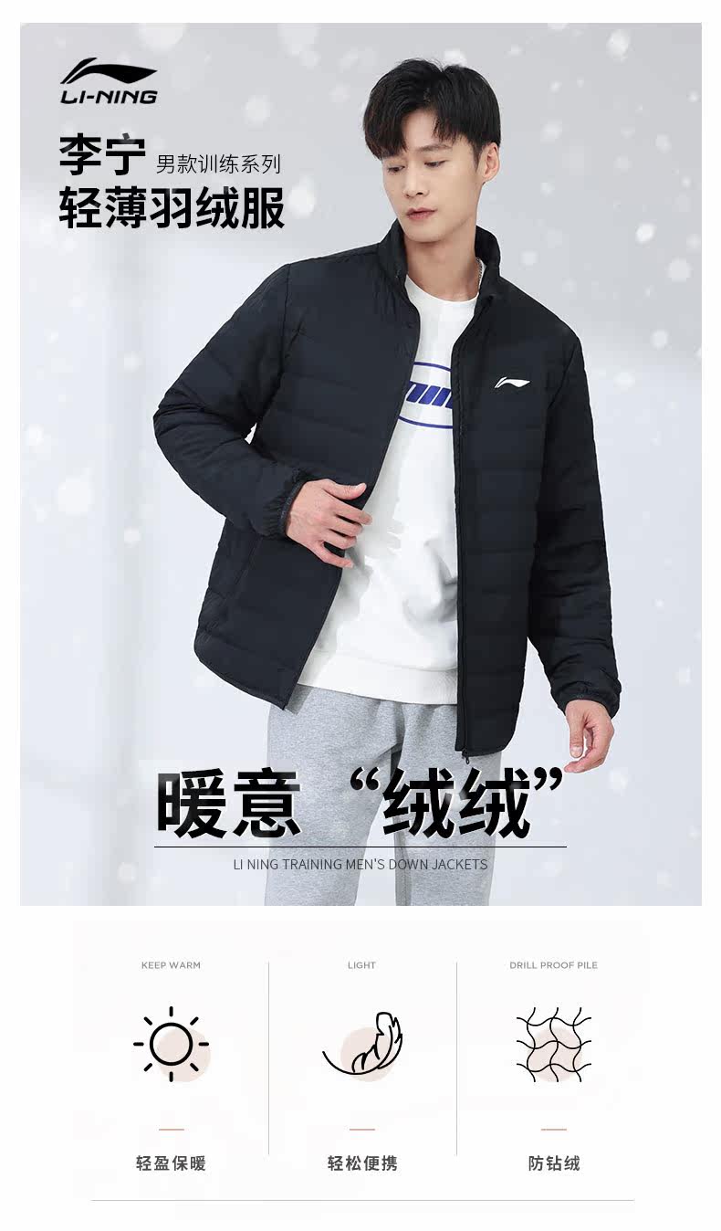 Li Ning, мужской зимний легкий и тонкий пуховик, удерживающая тепло короткая куртка для отдыха, коллекция 2023