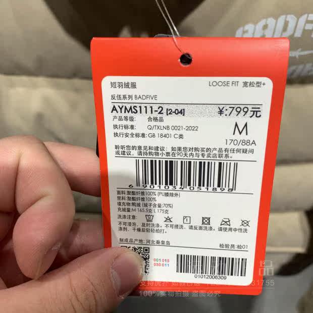 Li Ning, зимний модный удерживающий тепло бархатный спортивный пуховик, 2022, утиный пух