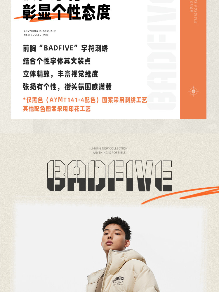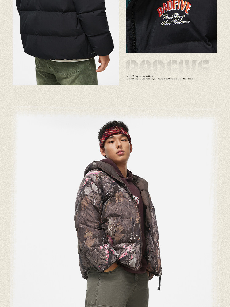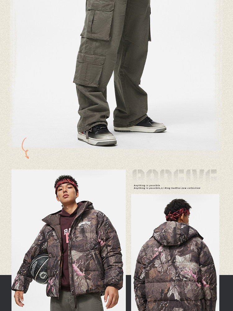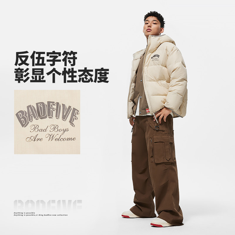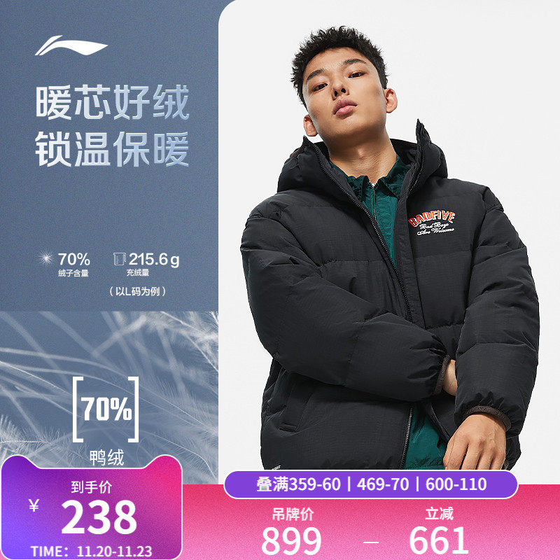 Li Ning, мужской зимний бархатный водоотталкивающий удерживающий тепло пуховик с капюшоном, утиный пух