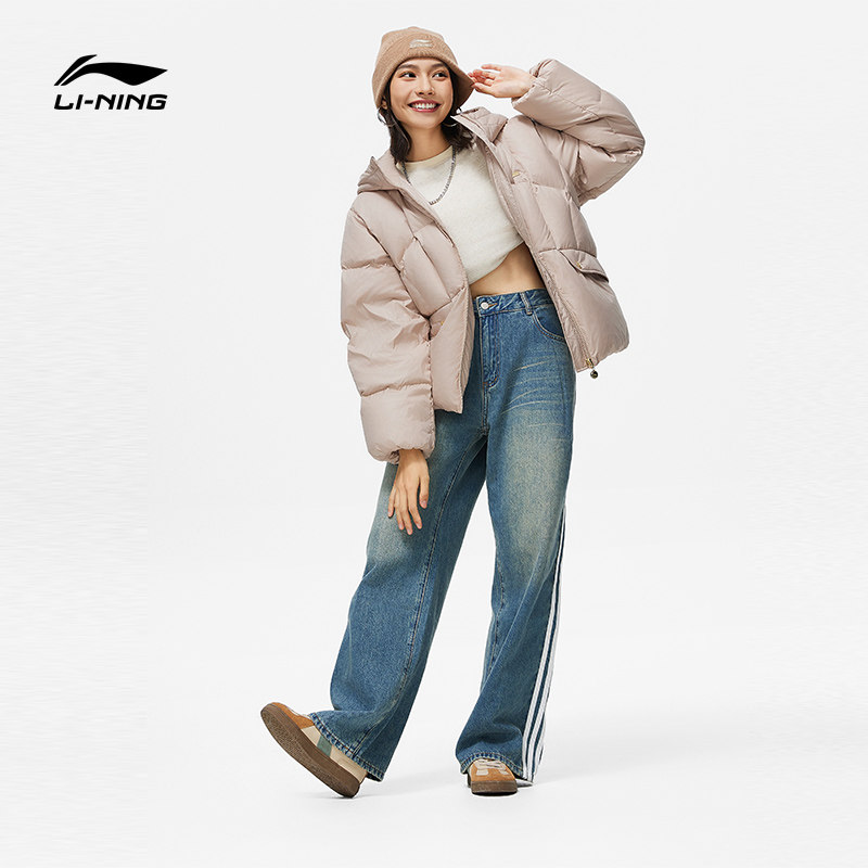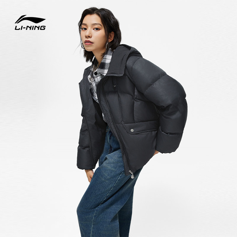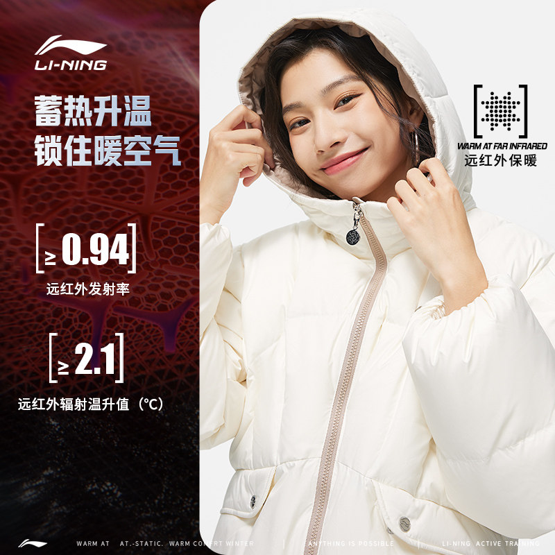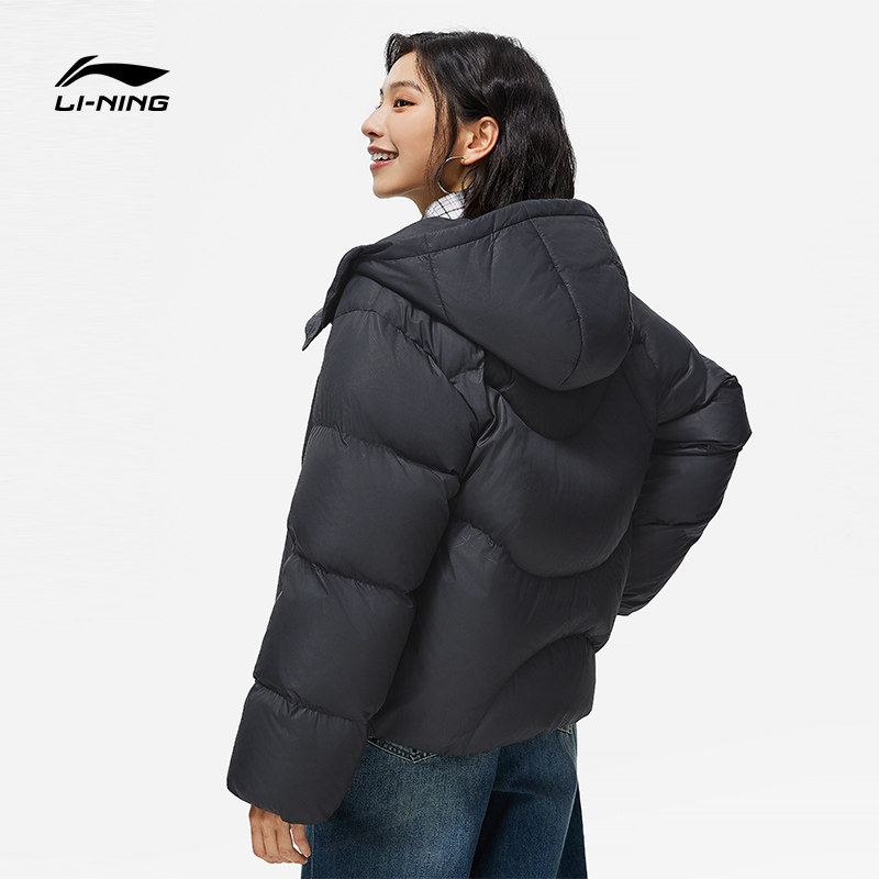 Li Ning, зимний короткий бархатный удерживающий тепло пуховик, белый спортивный костюм с капюшоном, утиный пух, свободный крой