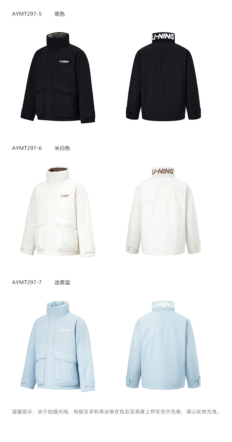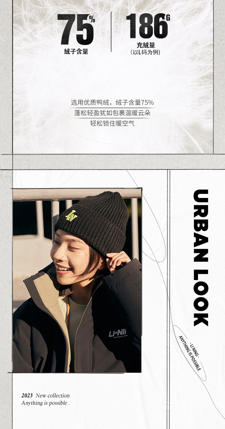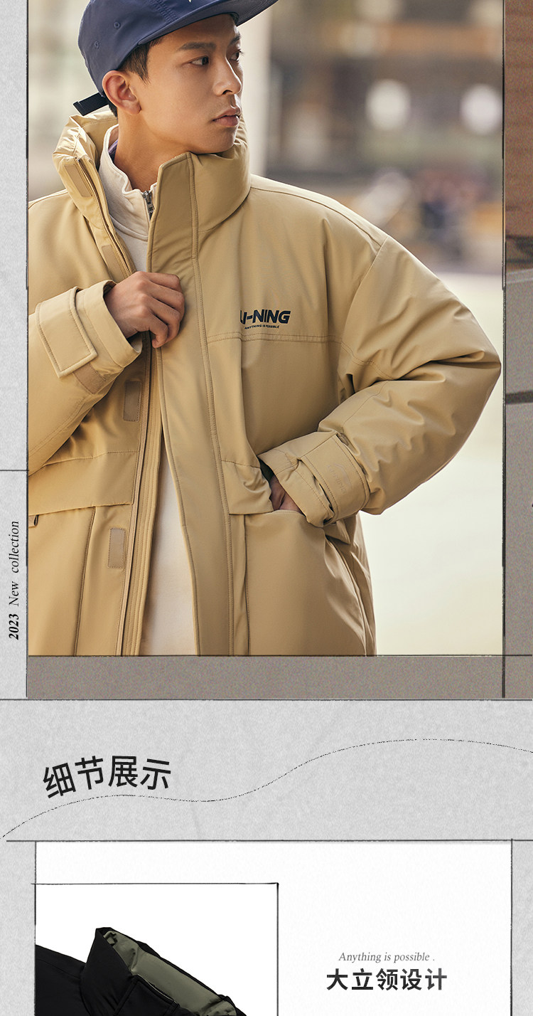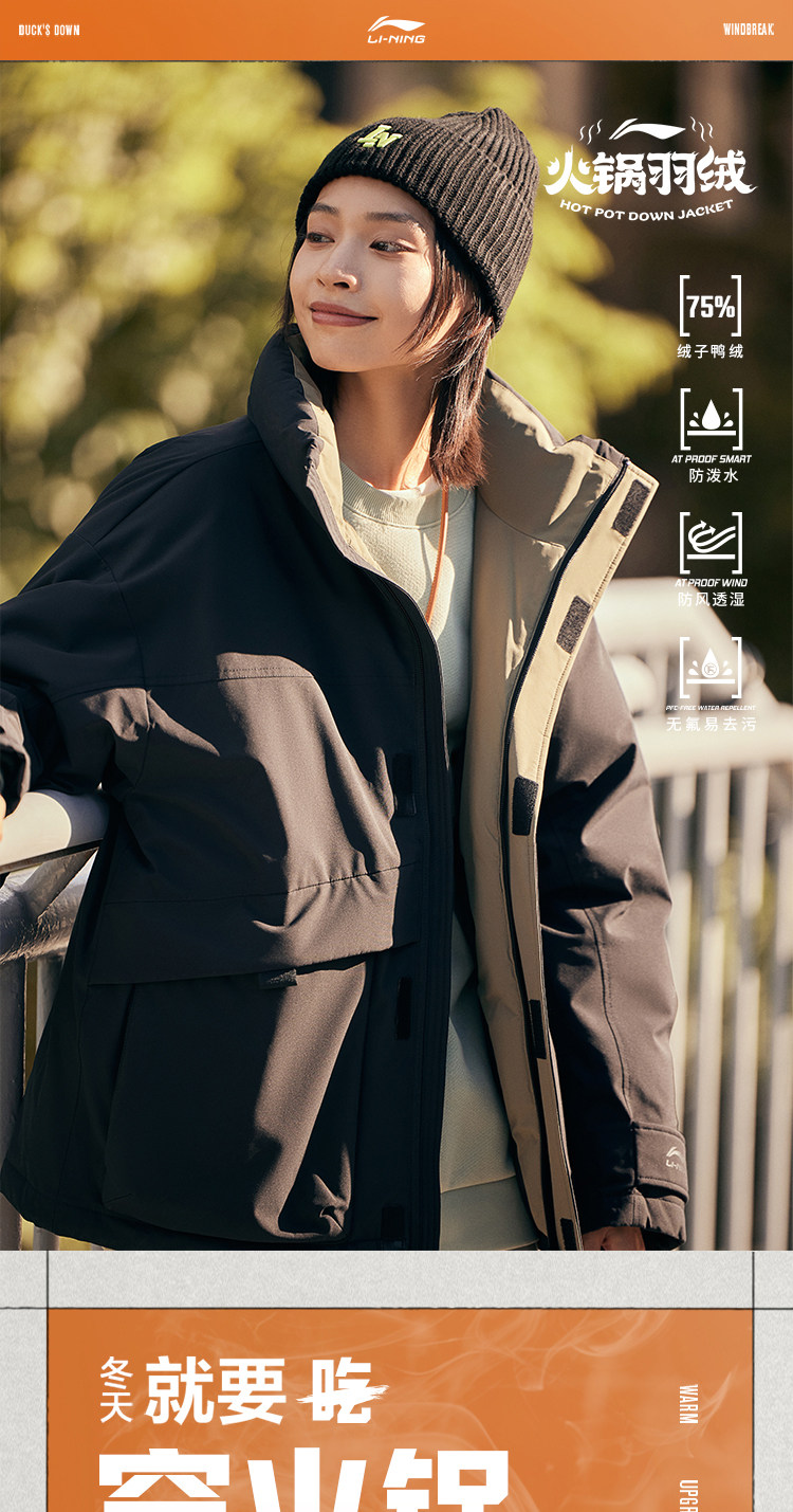Li Ning, зимний короткий водоотталкивающий бархатный удерживающий тепло спортивный пуховик, утиный пух, оверсайз