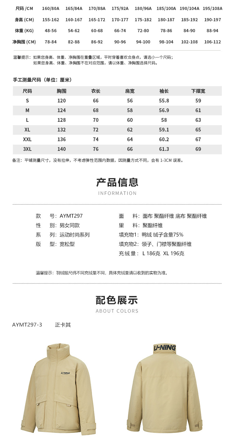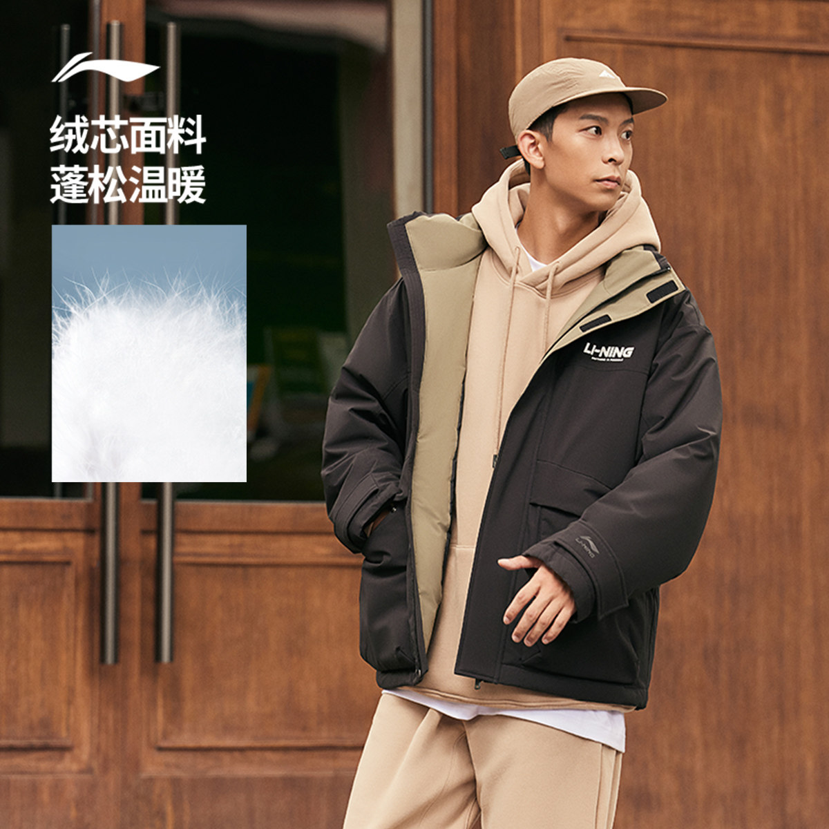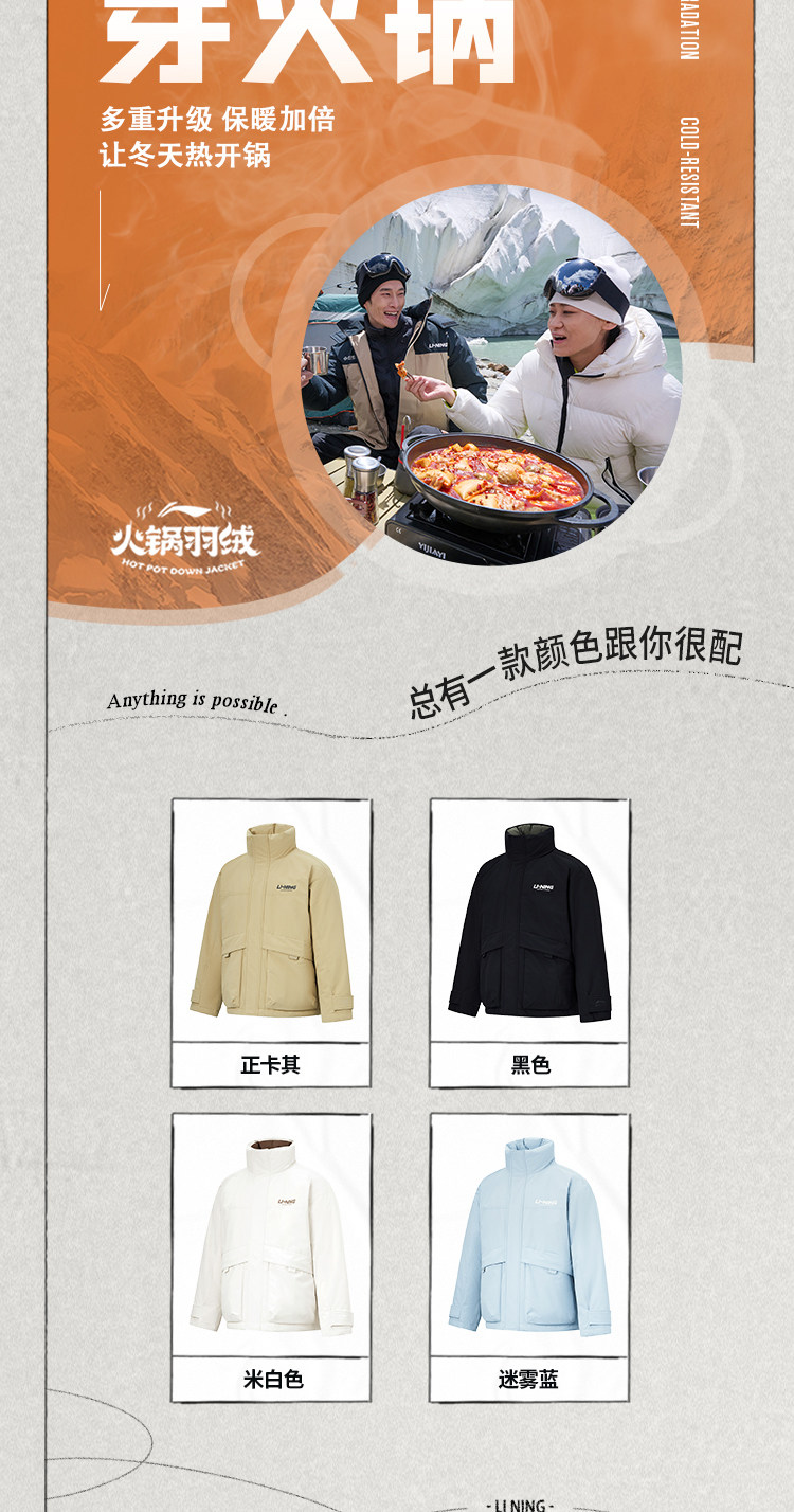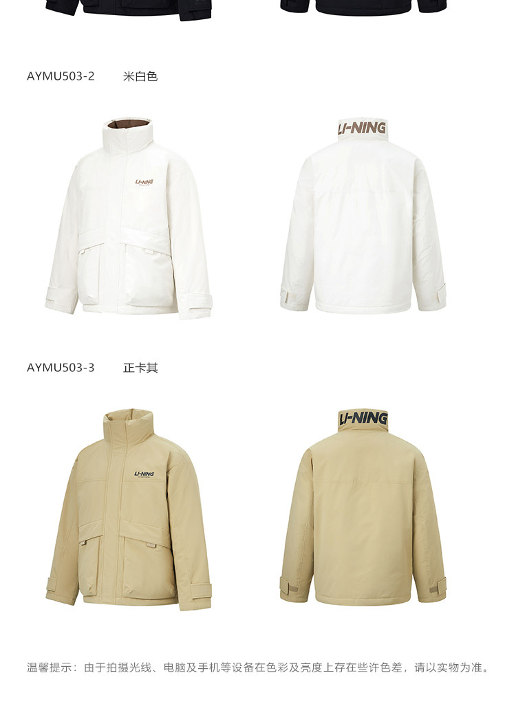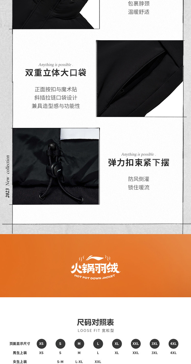 Li Ning, зимний короткий водоотталкивающий бархатный удерживающий тепло спортивный пуховик, утиный пух, оверсайз