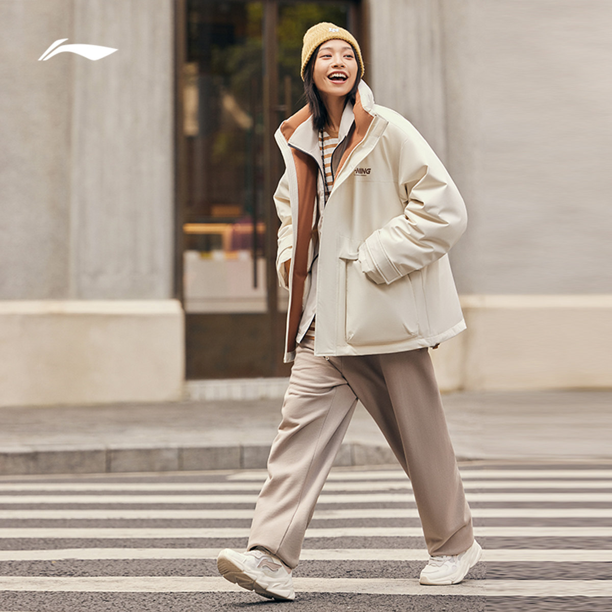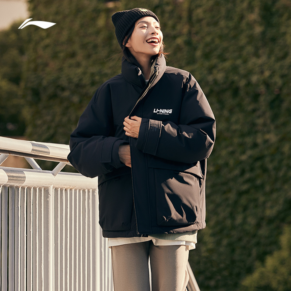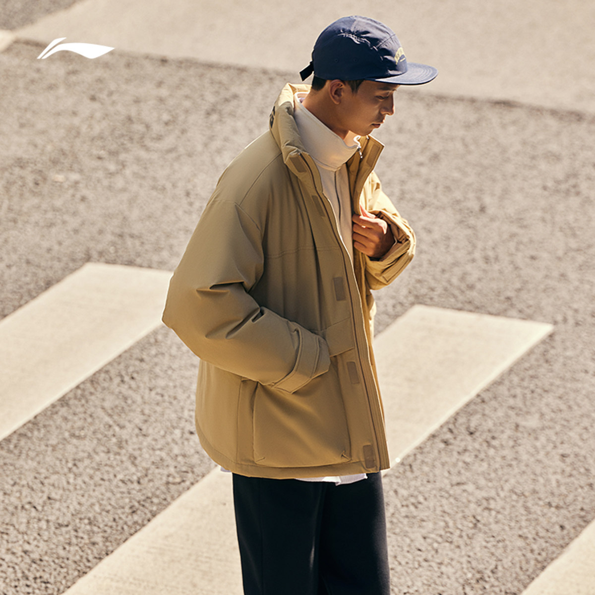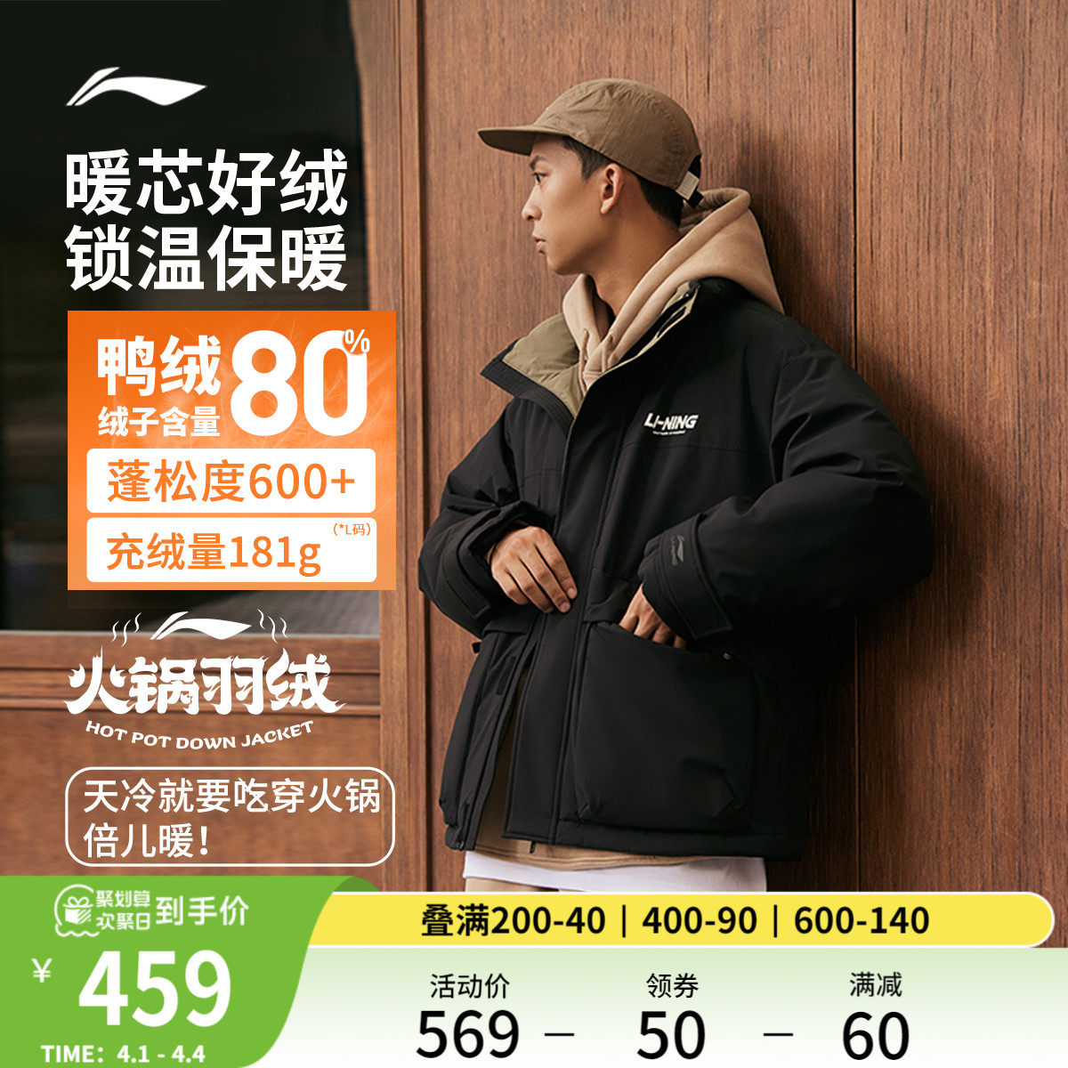 Li Ning, зимний короткий водоотталкивающий бархатный удерживающий тепло спортивный пуховик, утиный пух, оверсайз