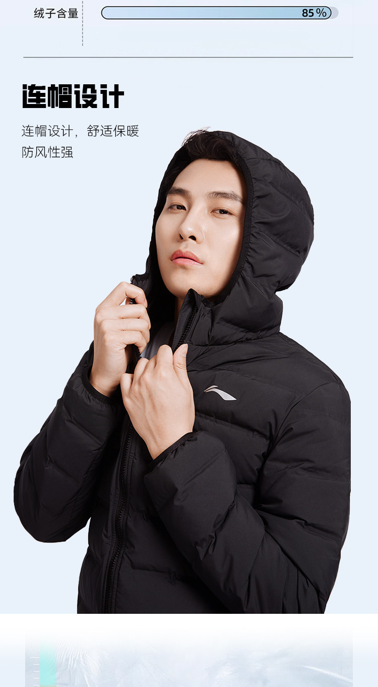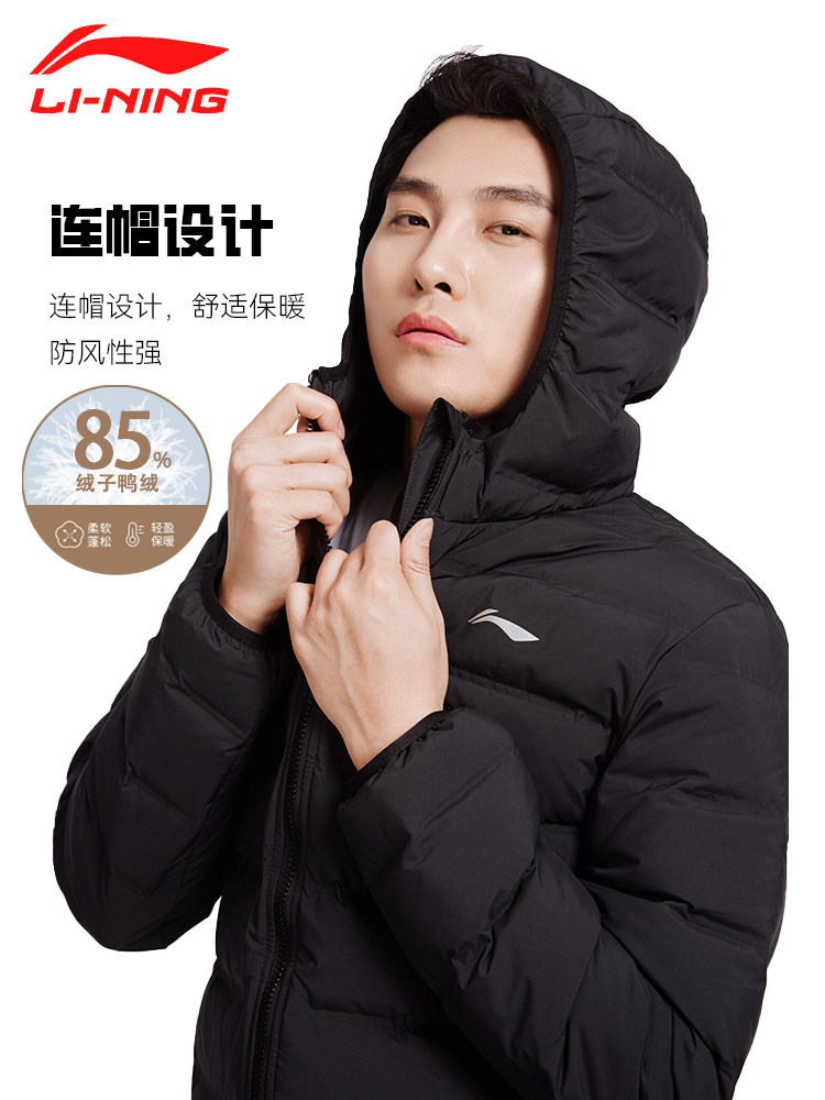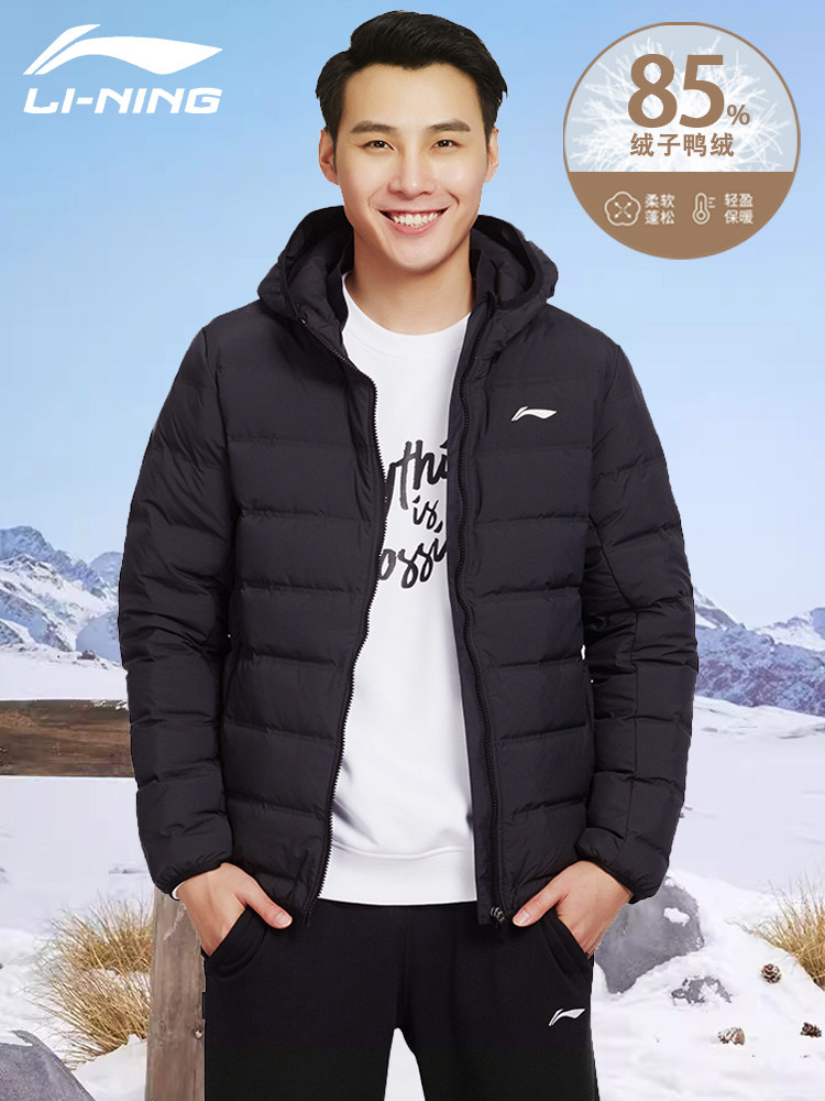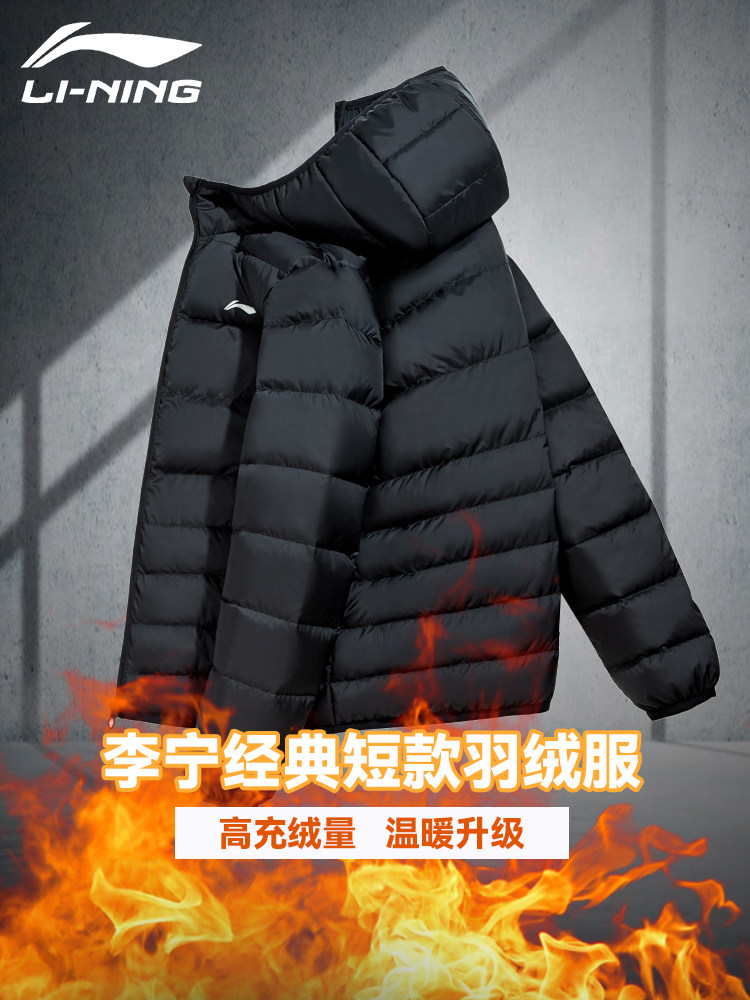 Li Ning, мужской демисезонный пуховик с капюшоном, легкая и тонкая бархатная короткая удерживающая тепло куртка, спортивный костюм, утиный пух