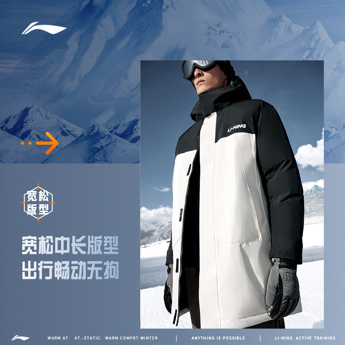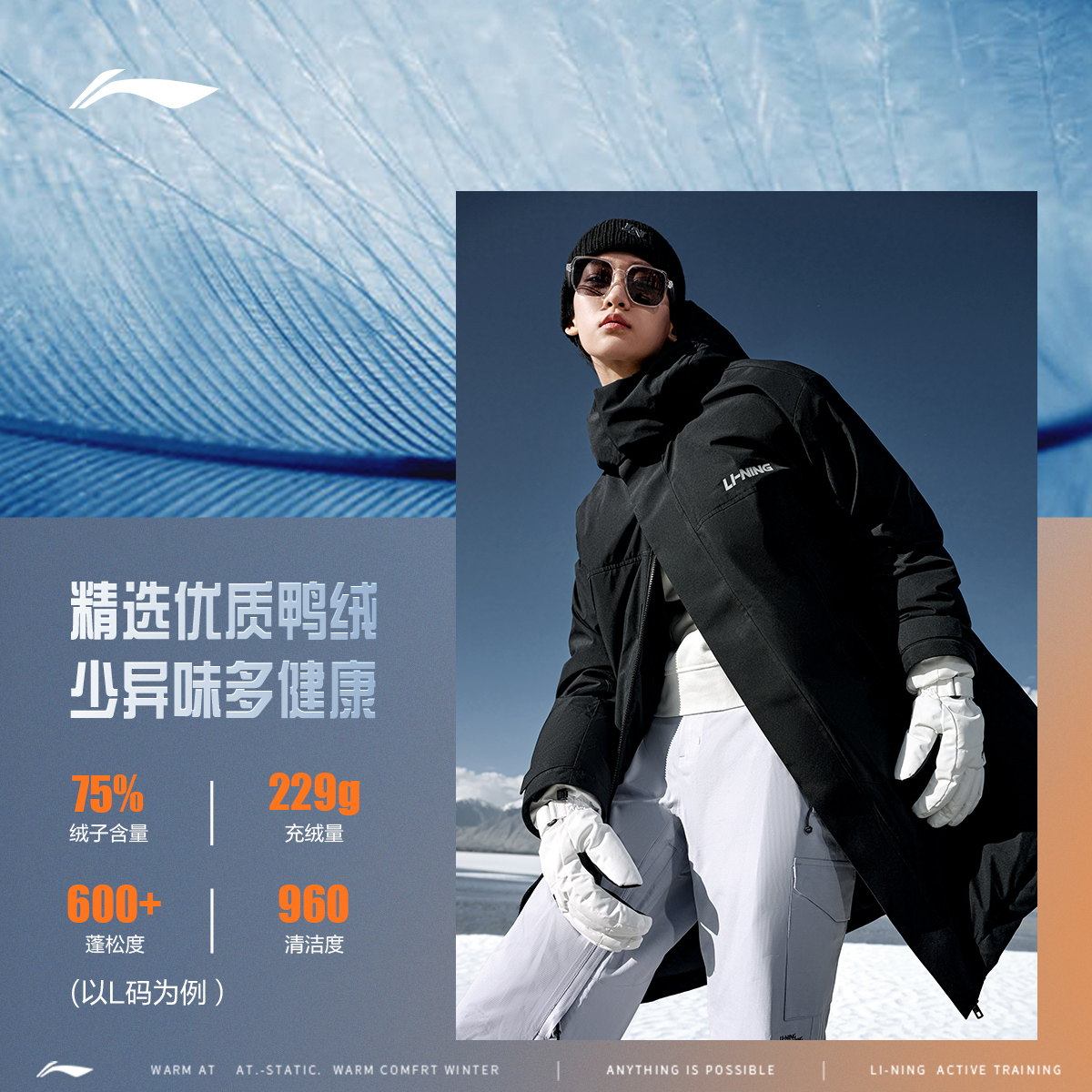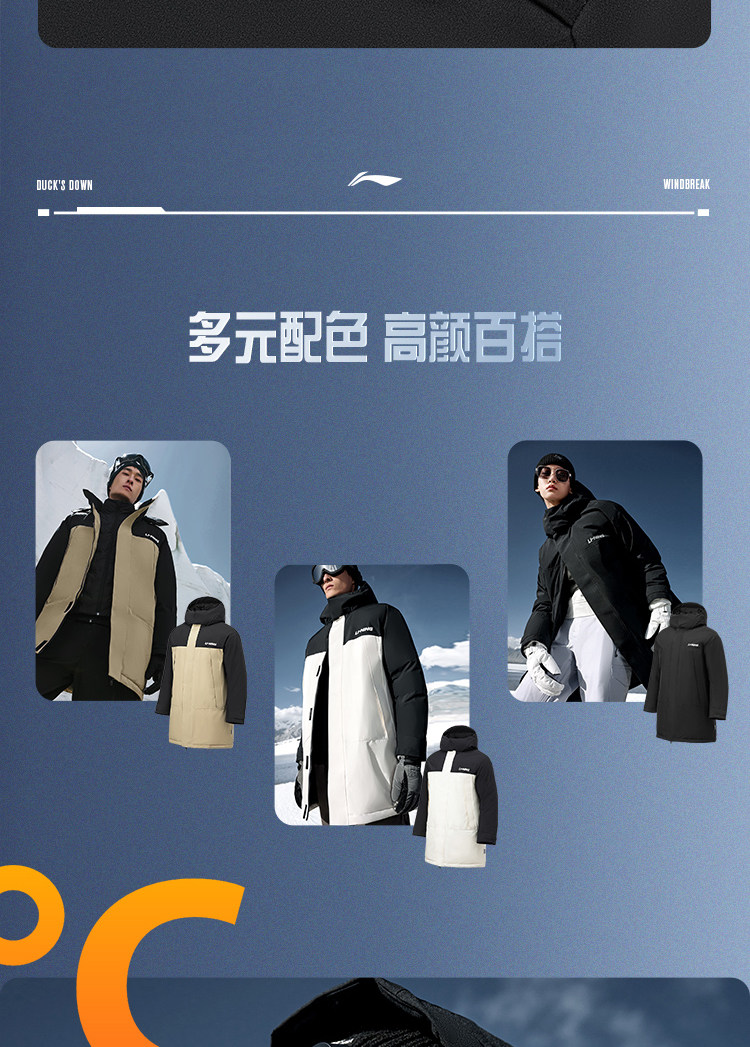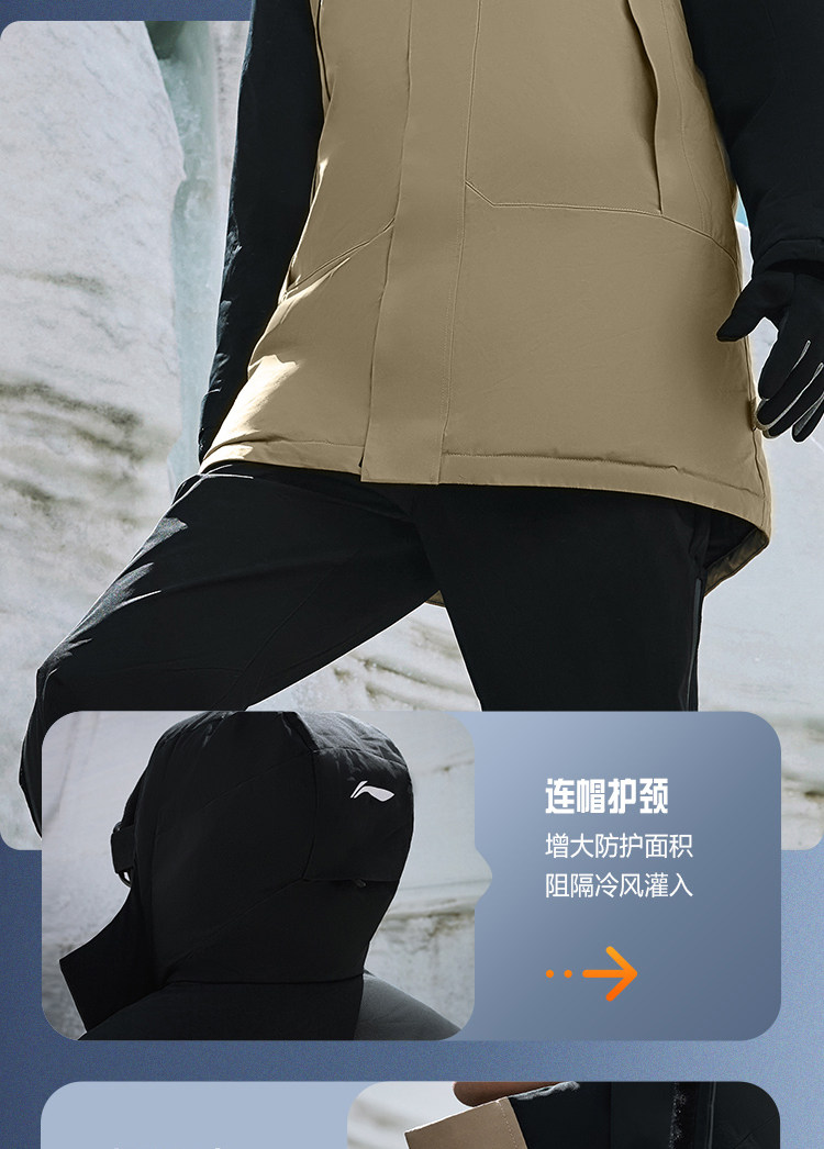 Li Ning, пуховик, бархатная удерживающая тепло длинная дорожная толстовка с капюшоном, утиный пух