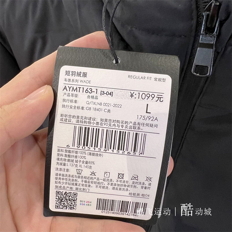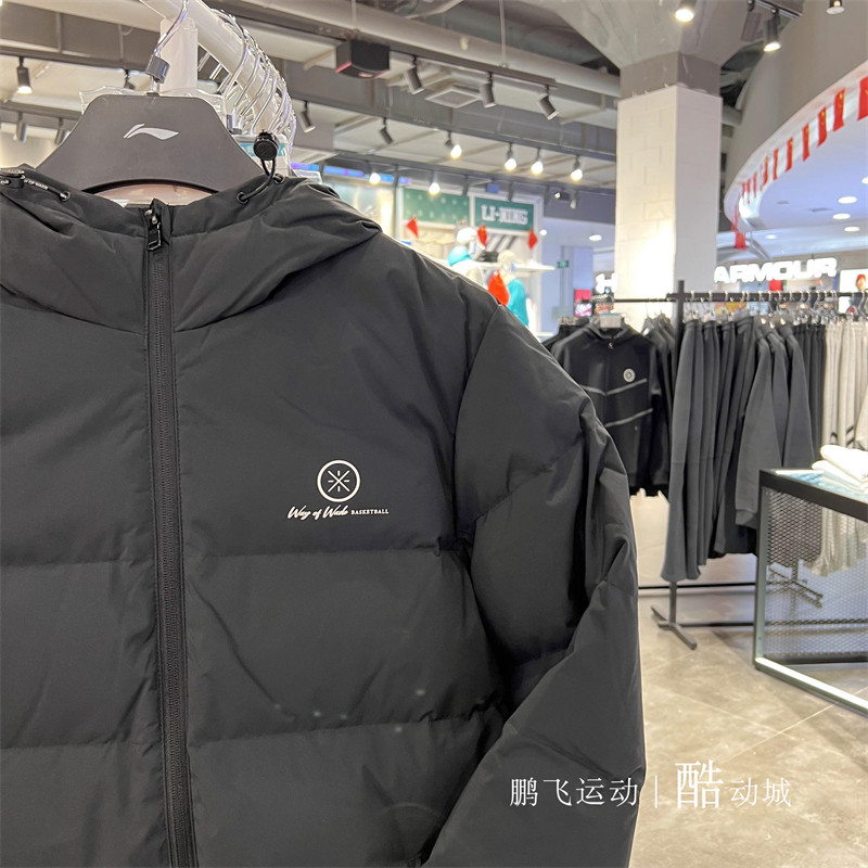 Li Ning, зимняя короткая куртка, бархатный удерживающий тепло спортивный пуховик с капюшоном, 2023, гусиный пух