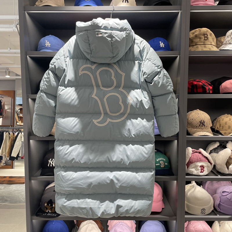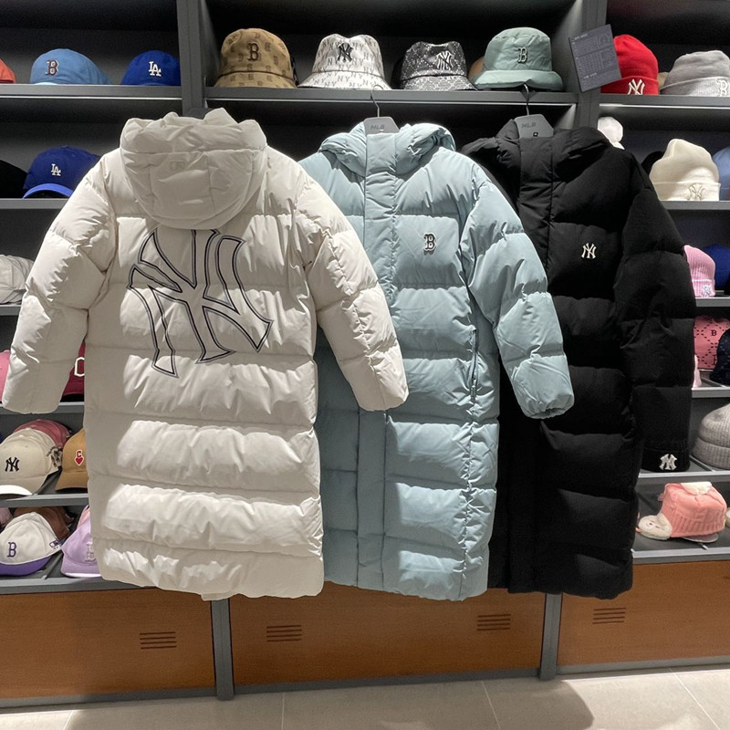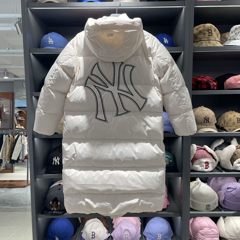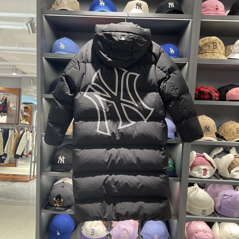 MLB, классический длинный пуховик с капюшоном подходит для мужчин и женщин, длина макси, свободный крой