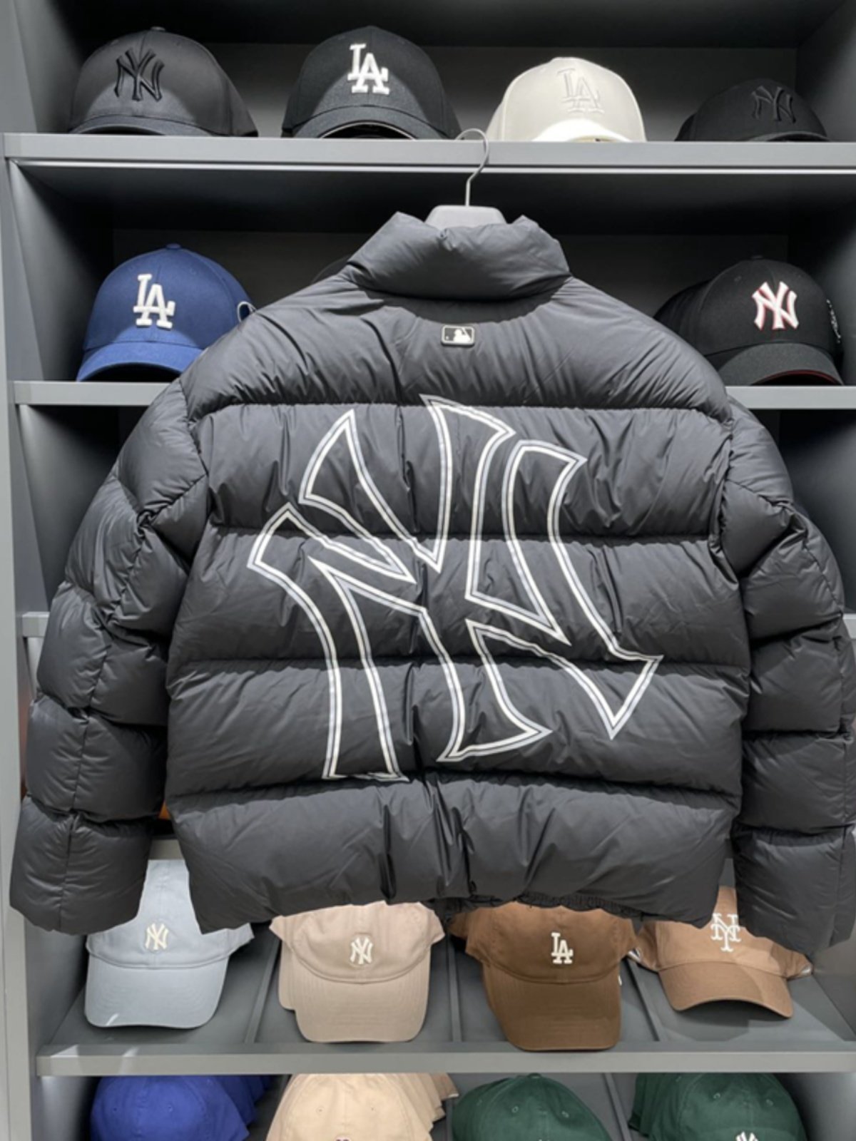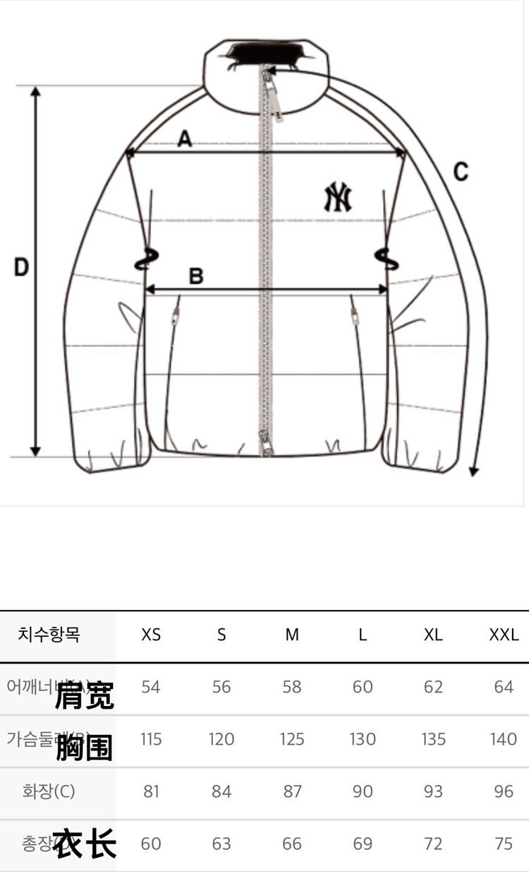 Counter подлинный MLB приобрел 23 осень и зимнюю новую Hollow NY BACK Крупный нагрев Short Down Down Jacket 3ADJB04