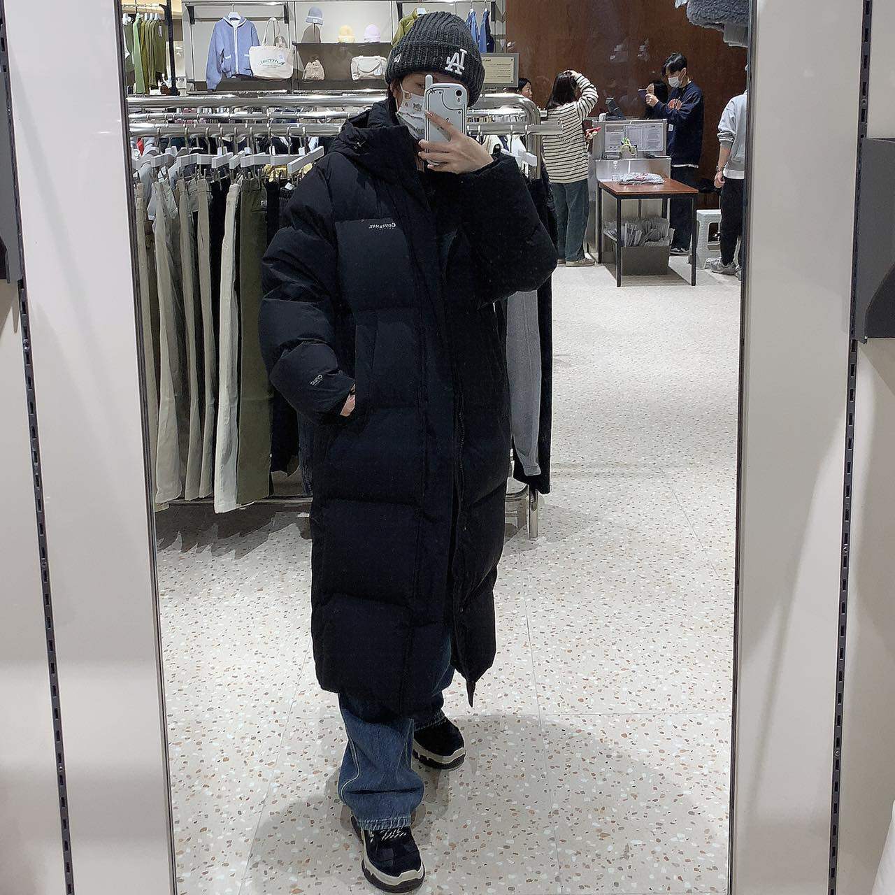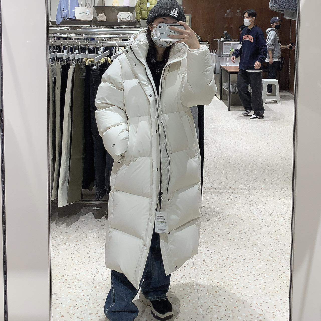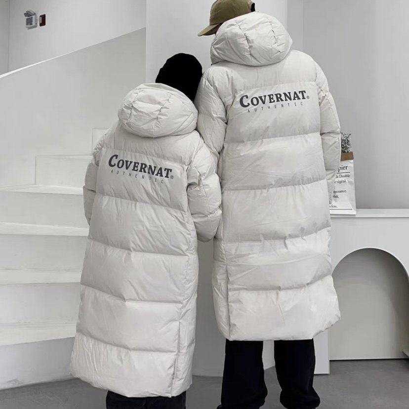 Корейский подлинный Covernat Покупка логотипа 23FW Classic за печатным длинным капюшоном утки с капюшоном вниз куртки