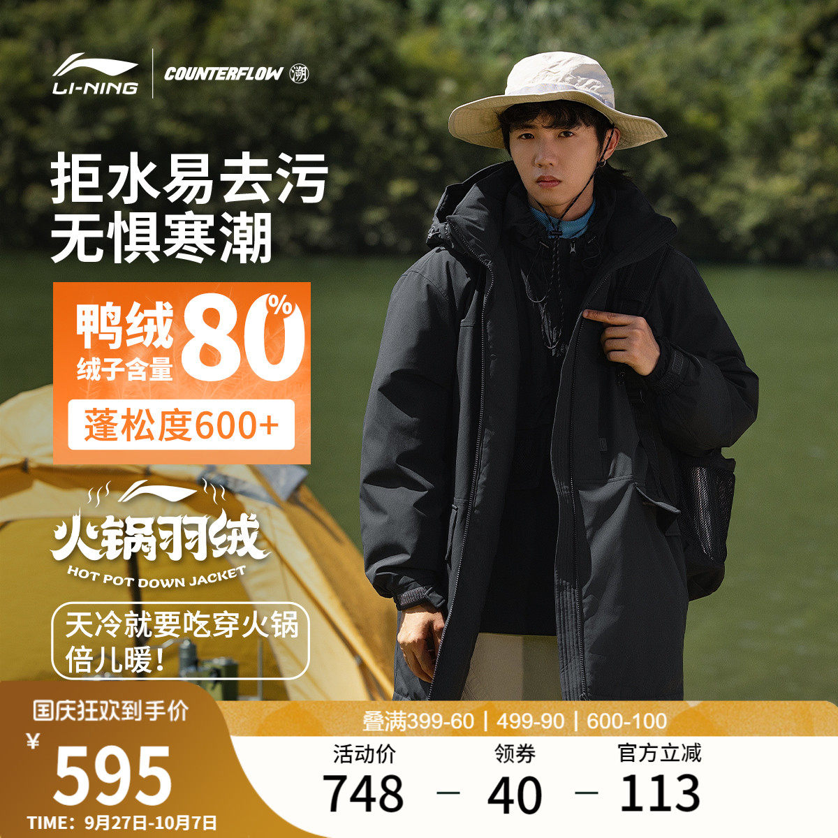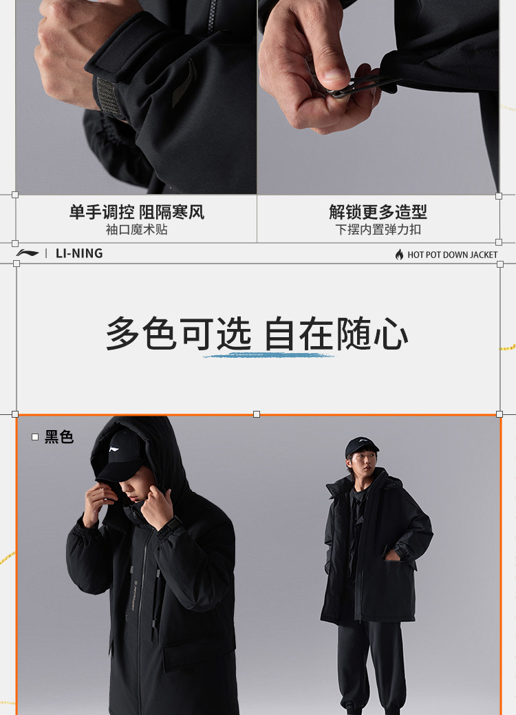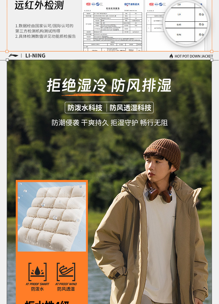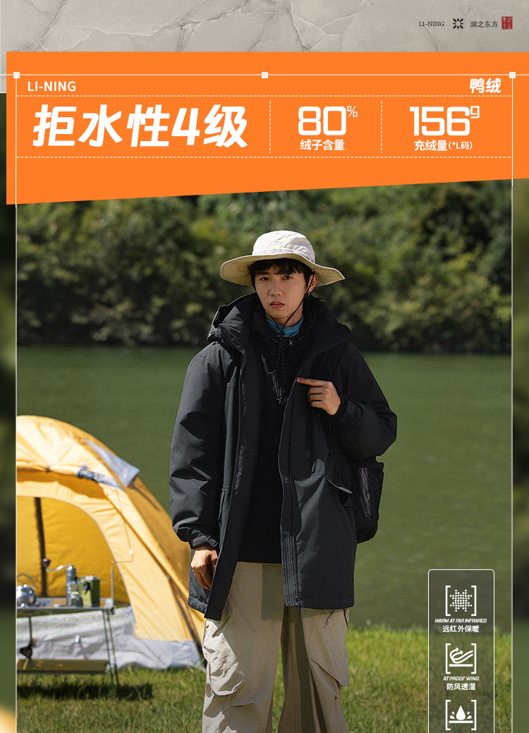 Li Ning, мужской дорожный пуховик, демисезонная толстовка с капюшоном, утепленный спортивный костюм, увеличенная толщина, утиный пух