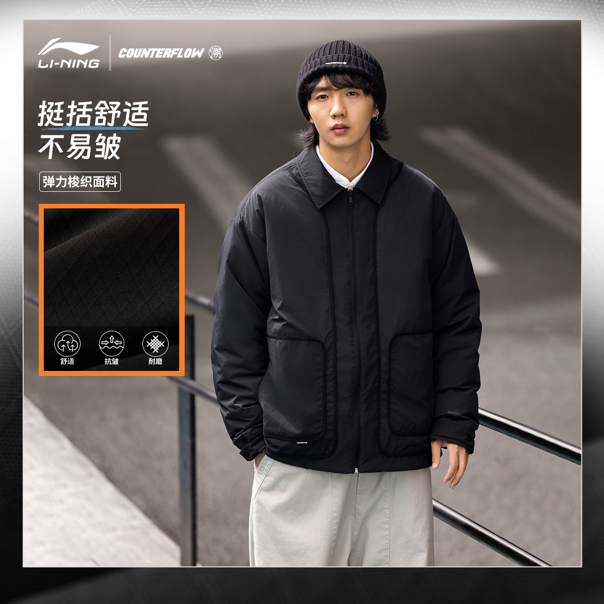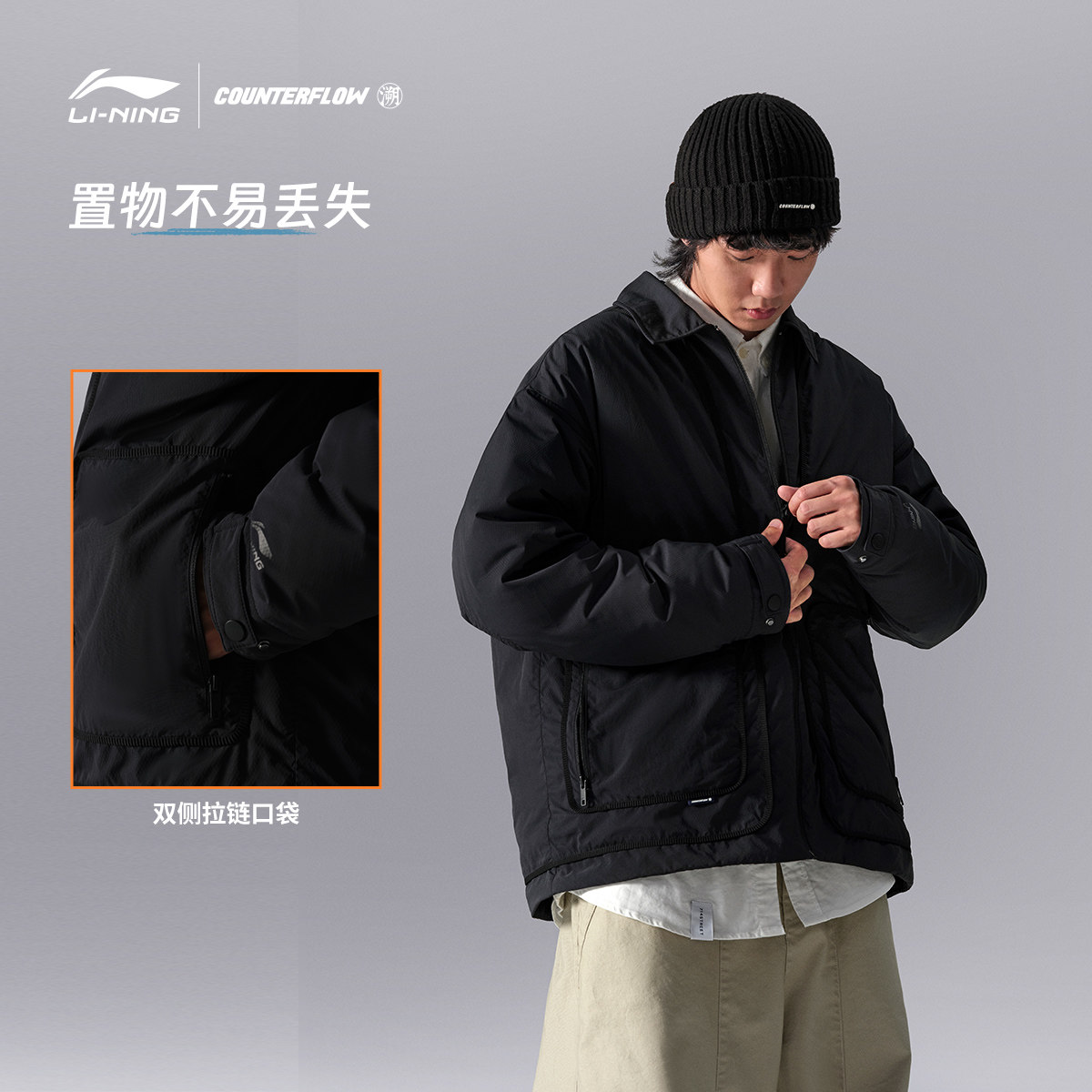 Li Ning, мужской короткий демисезонный пуховик, утепленный бархатный спортивный костюм, свободный крой, утиный пух