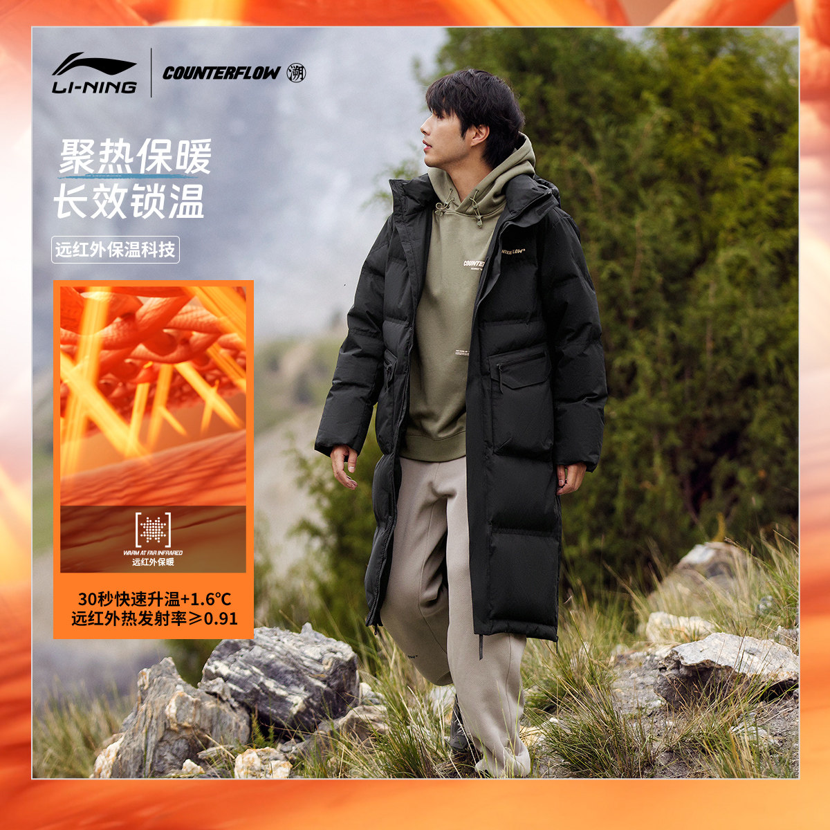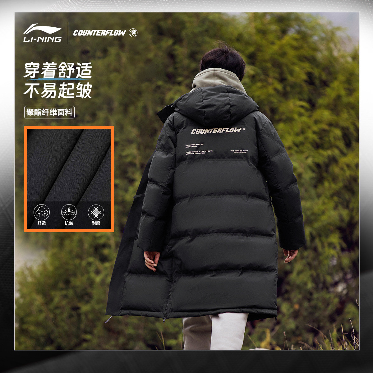 Li Ning, длинный зимний бархатный пуховик, утепленный удерживающий тепло ветрозащитный спортивный костюм, длина макси, утиный пух
