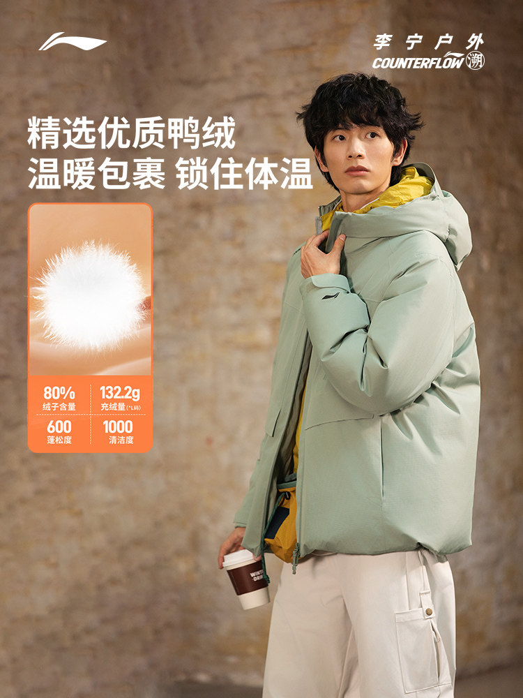 Li Ning, мужской дорожный пуховик, удерживающая тепло толстовка с капюшоном, спортивный костюм