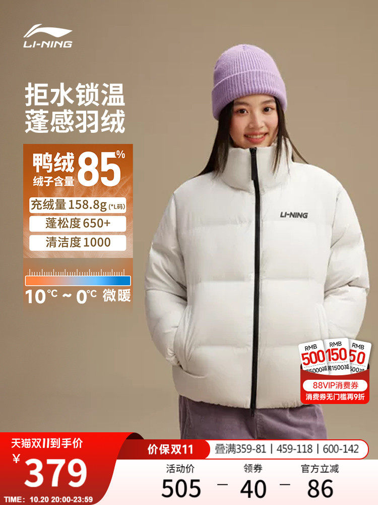 Li Ning, зимний пуховик подходит для мужчин и женщин, короткая удерживающая тепло спортивная куртка, для влюбленных