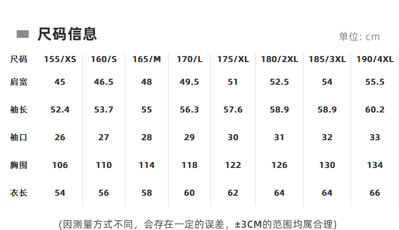 | Размер: | 155/XS, 160/S, 165/M, 170/L, 175/XL, 180/2XL, 185/3XL, 190/4XL |