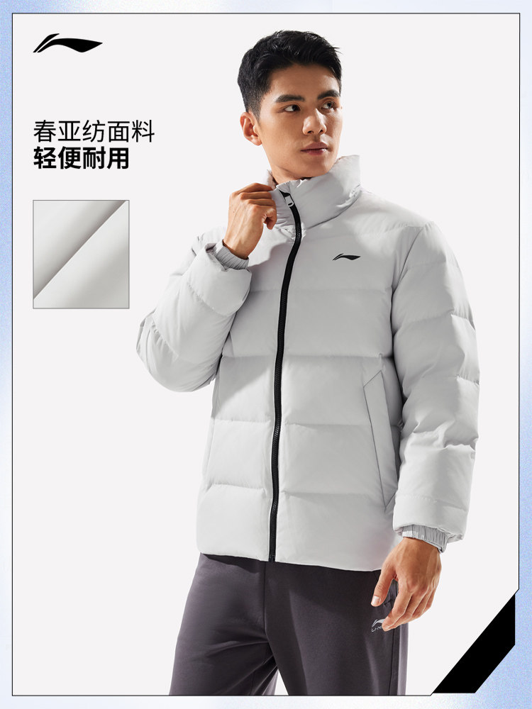 Li Ning, мужской короткий пуховик для спортзала, зимний утепленный спортивный костюм, утиный пух