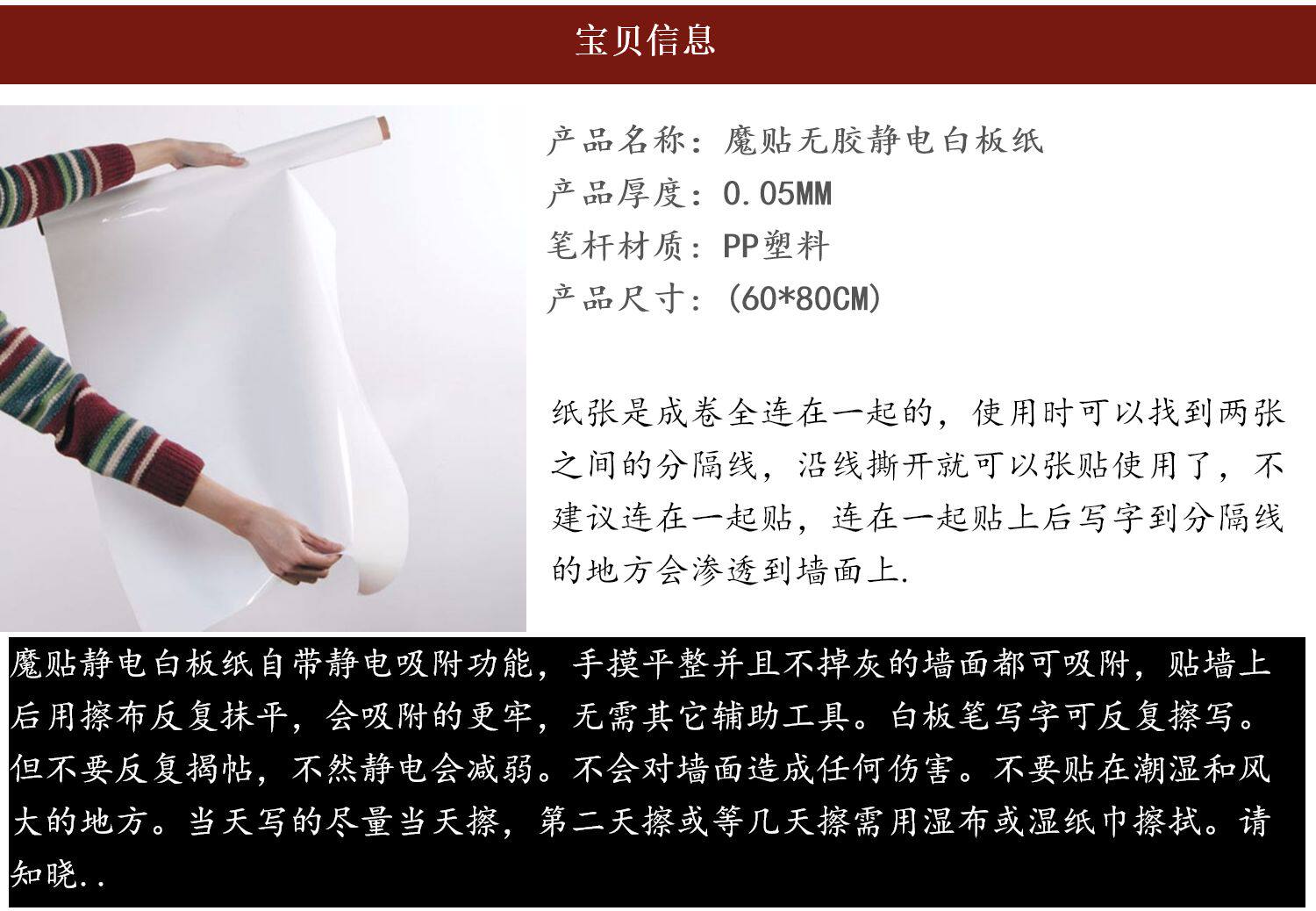 Волшебная наклейка Статическая электростатическая всасывающая белая доска наклейка Ультра -типичная портативная портативная бумага белой доски может быть втирать, не повреждая настенные наклейки белых досок