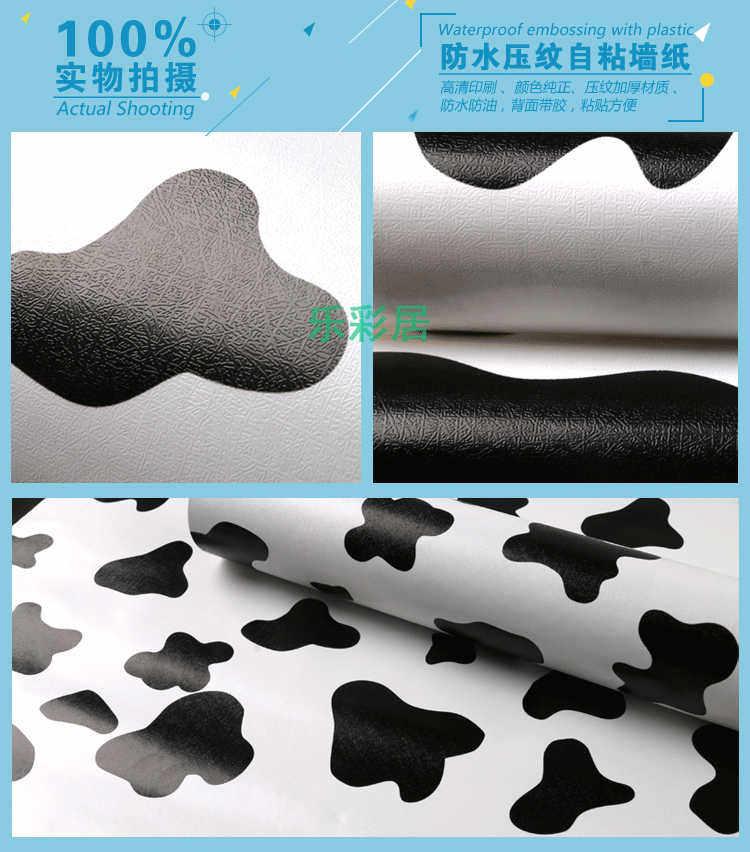 Модная личность утолщенная самостоятельная стена Черно -белая корова Работа Уочнические обои для общежития.