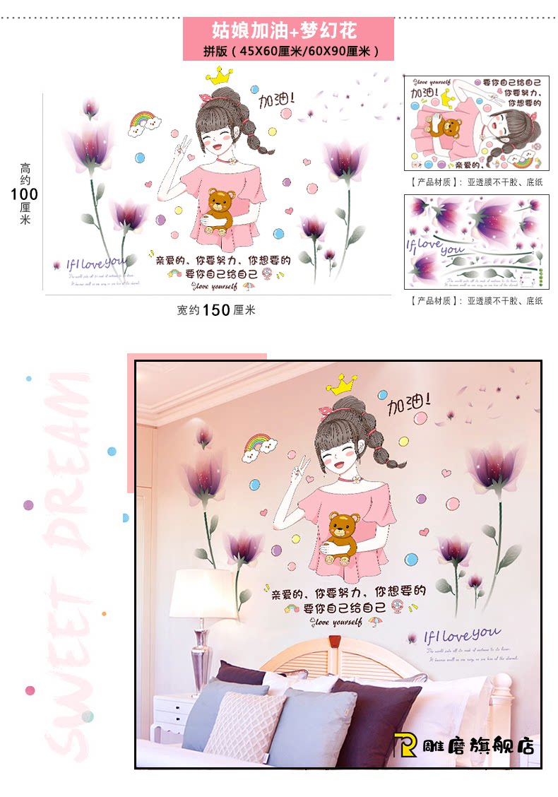 Настенные наклейки для принцессы, самоклеющиеся обои, детская наклейка на стену