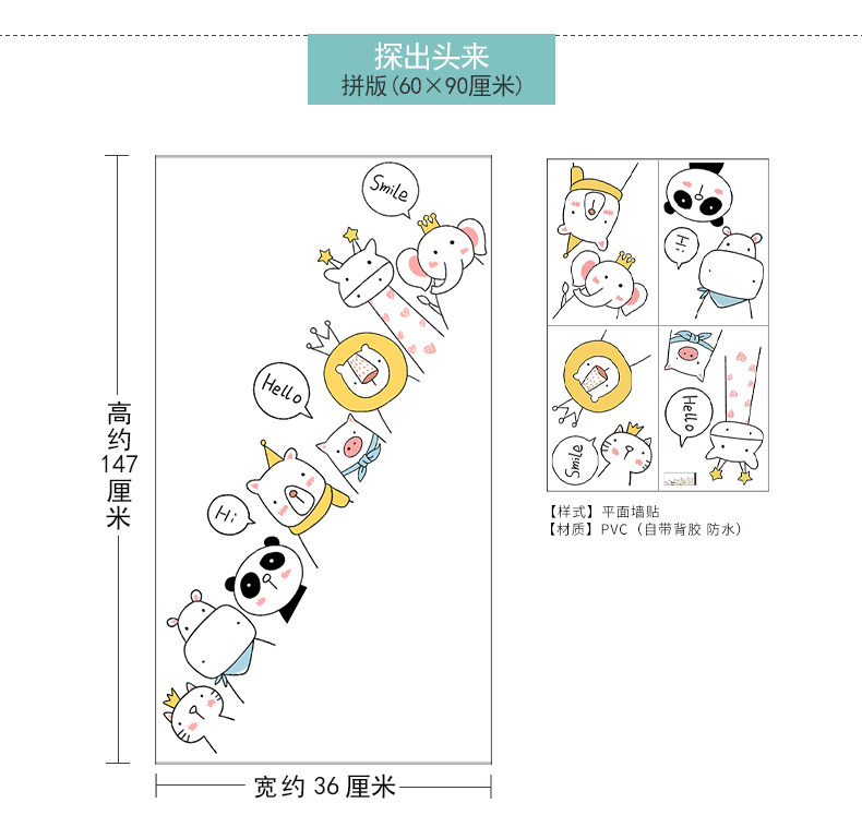 Самоклеющиеся мультяшные детские наклейки на стену, настенная водонепроницаемая наклейка
