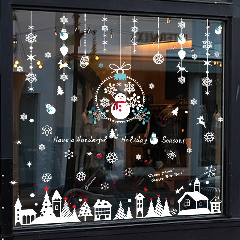 Рождественская оконная наклейка, креативный декор на стену, 2023, со снежинками