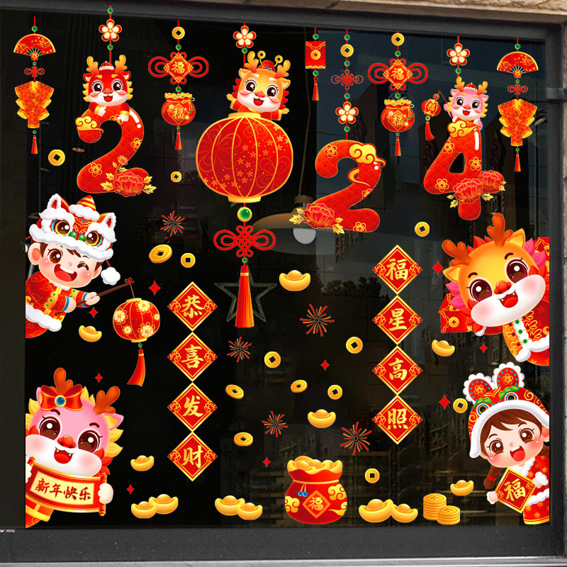 2024 Новый год Fuzi Gate Sticker China Dragon Новая годовая наклейка