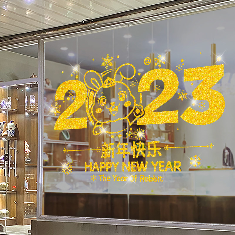 Мультяшный кролик, цветочный магазин, весенняя стеклянная оконная наклейка, 2023, год кролика