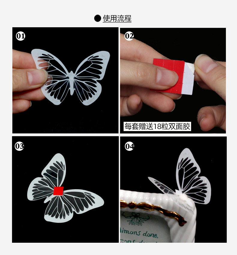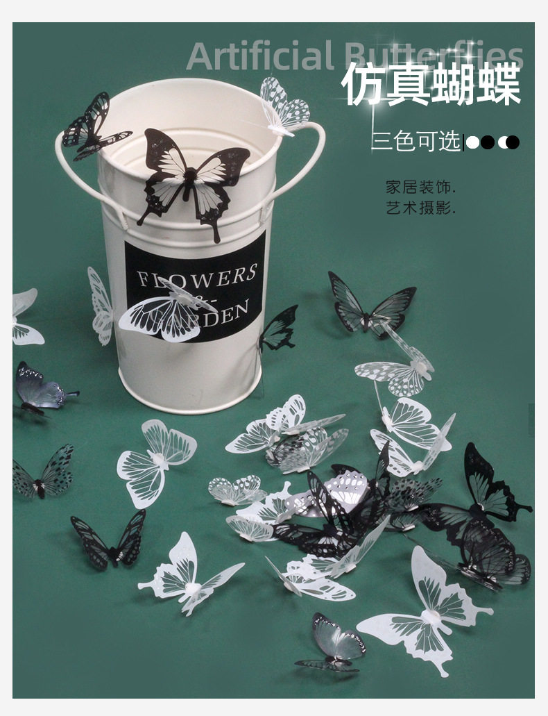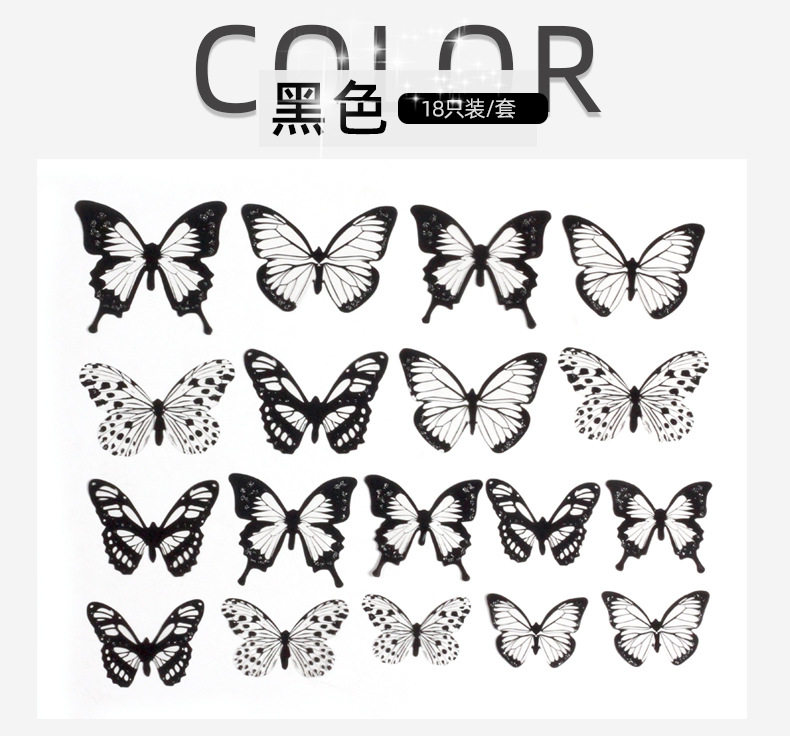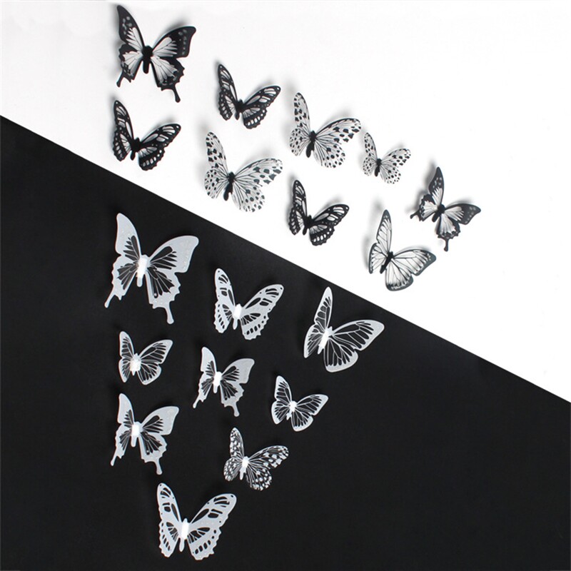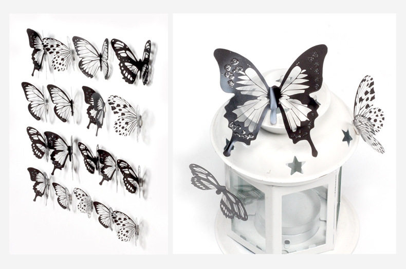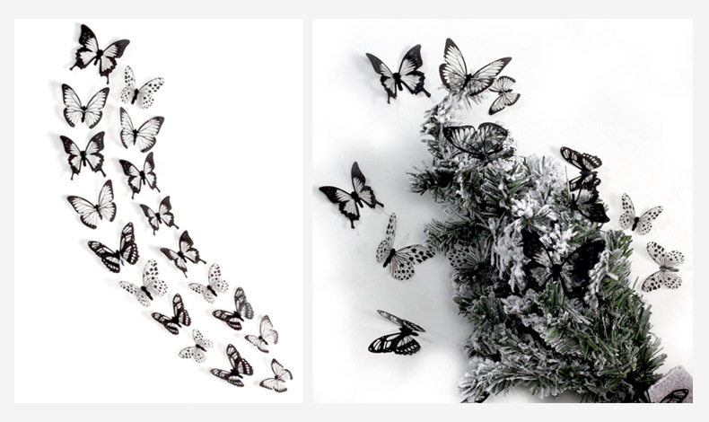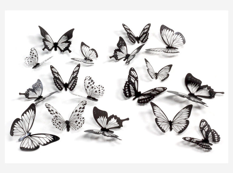 Двое в гостях получают одно или три потомства черно -белой бабочки 3D Стерео -симуляция бабочка ПВХ домашнее творческое украшение стены