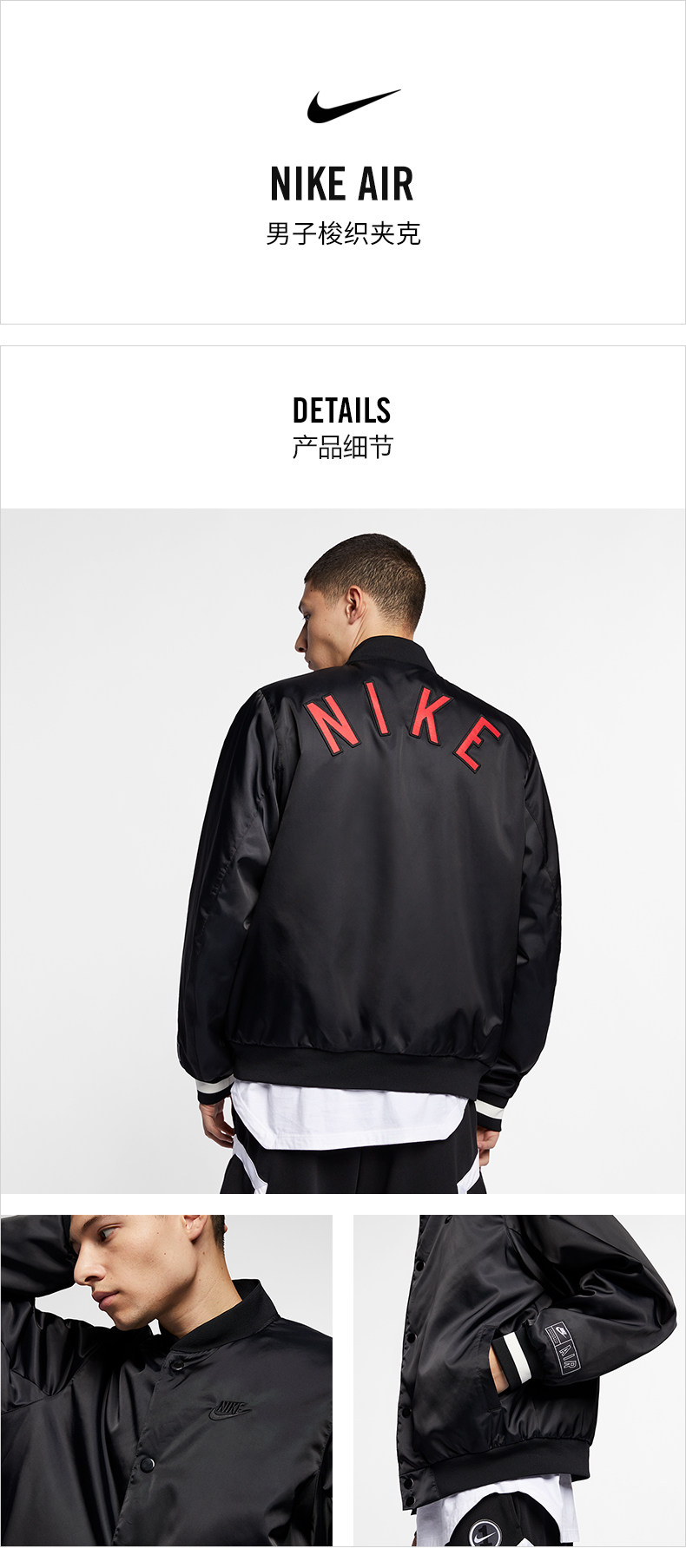 Nike Nike Air Men's Retro Sports Черно-белая бейсбольная куртка AR1838-010 CD5760