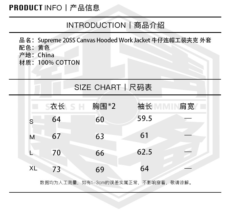Рабочая куртка Supreme 20SS Canvas с капюшоном джинсовая рабочая куртка с капюшоном куртка