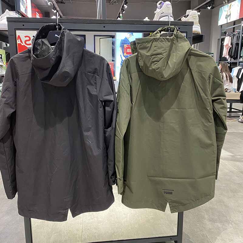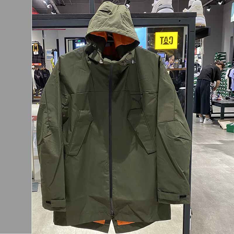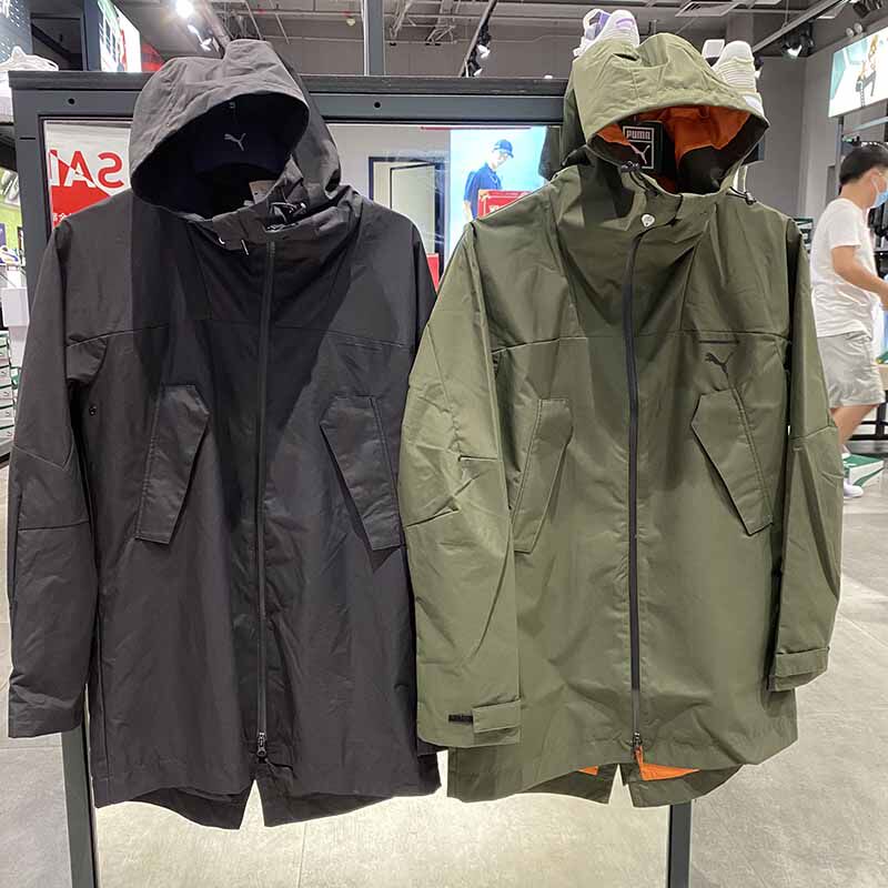 Puma, демисезонный длинный дорожный ветрозащитный плащ, спортивная толстовка с капюшоном для отдыха, средней длины