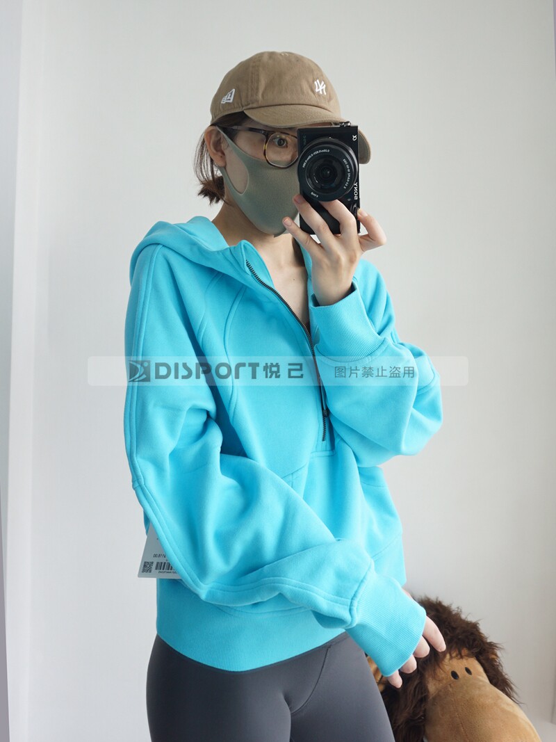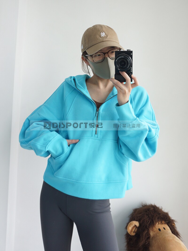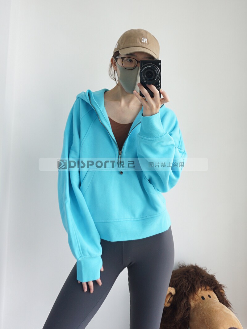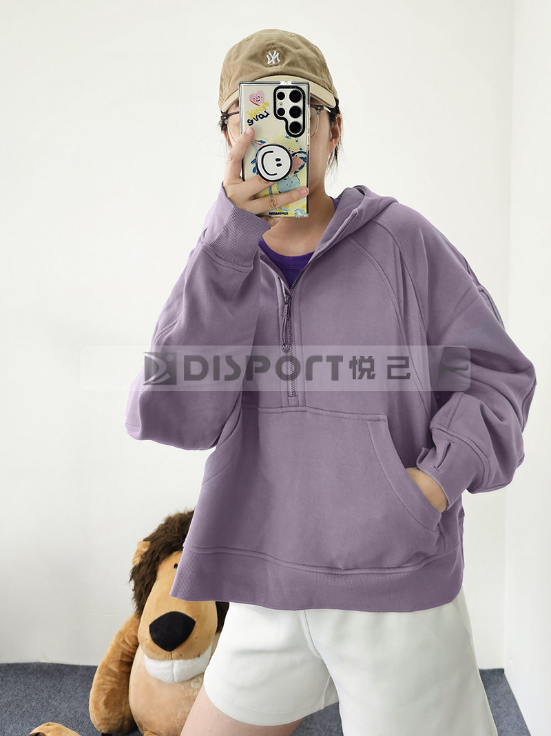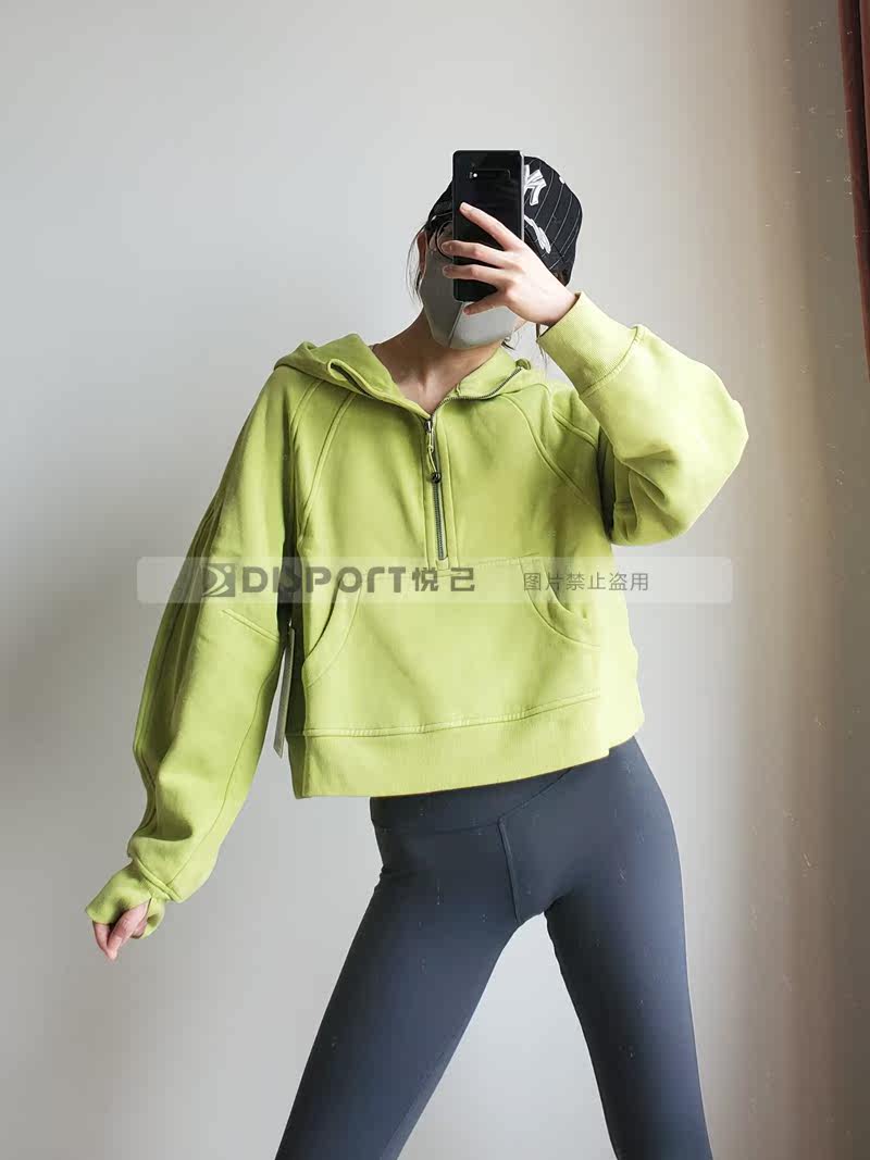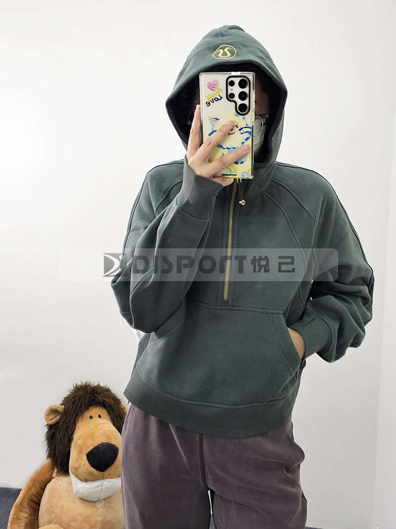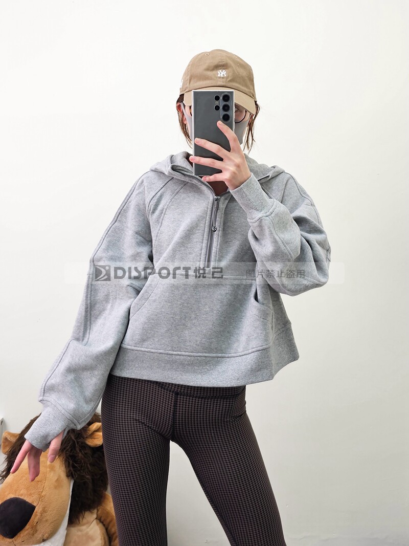 Spot Lululemon Scooded и Velvet Semi -Zipper Scuba Негабаритный 1/2 свитера на молнии