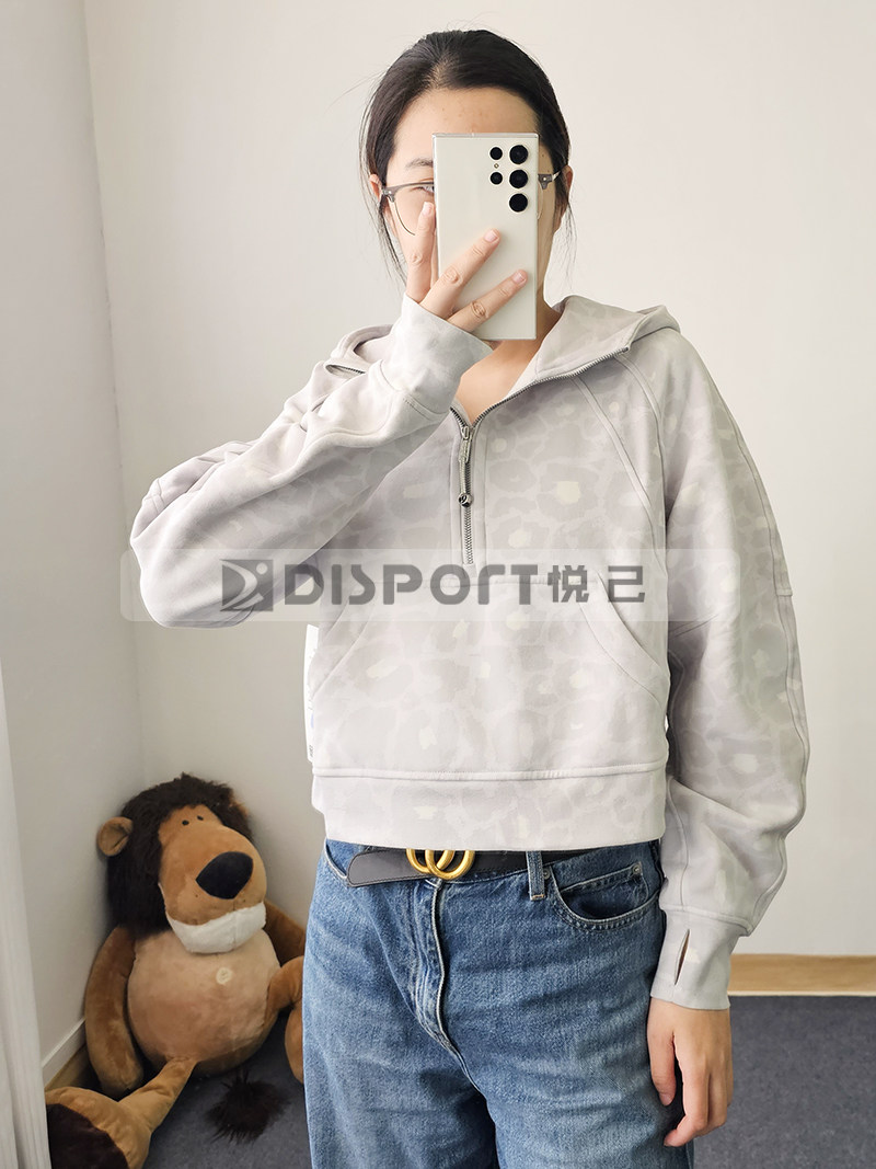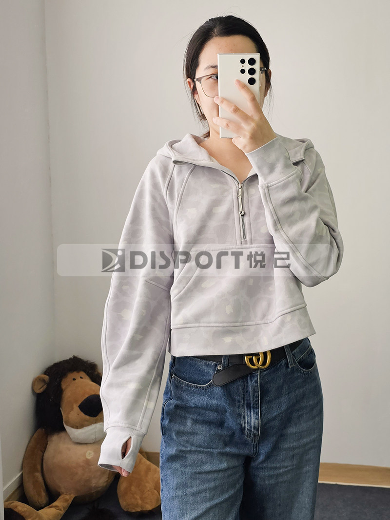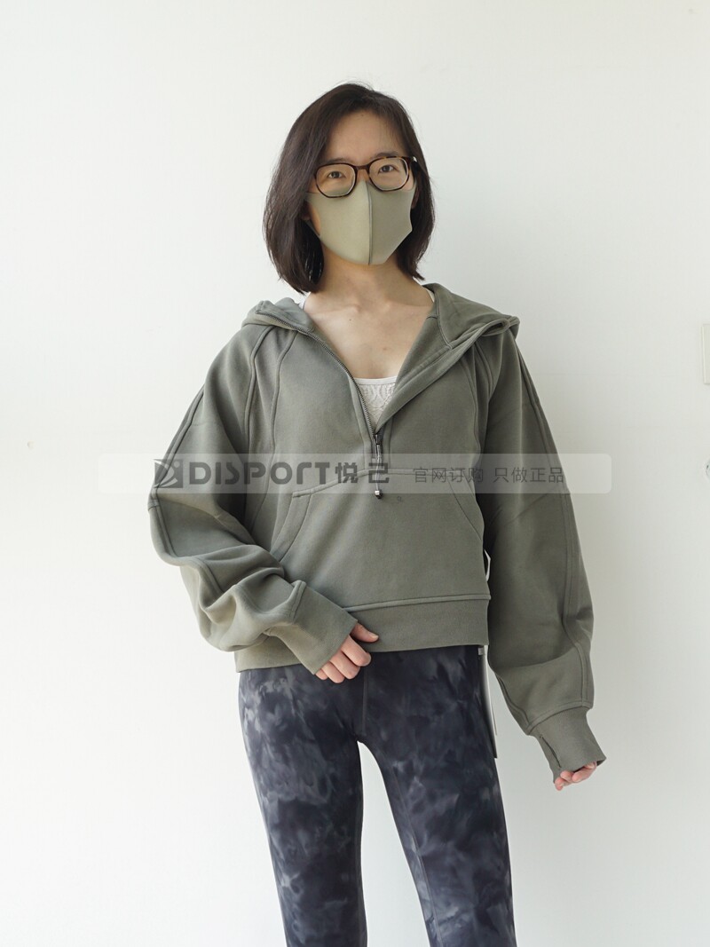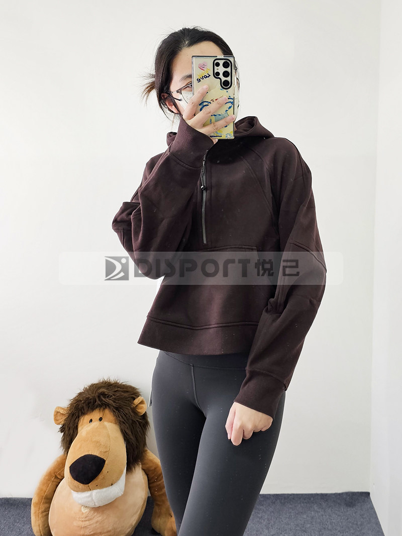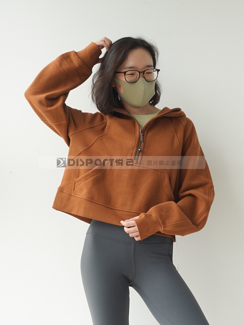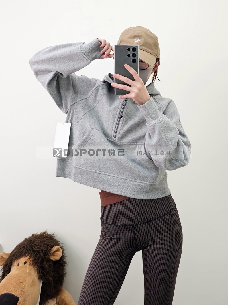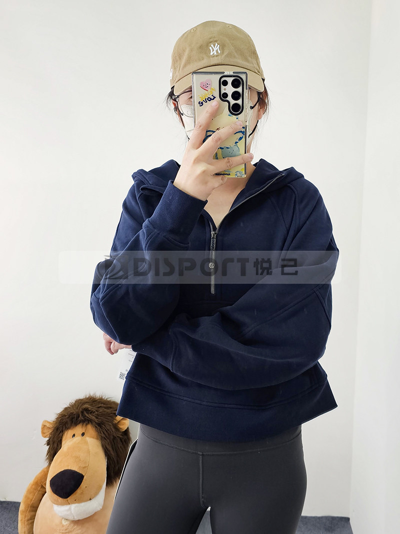 Spot Lululemon Scooded и Velvet Semi -Zipper Scuba Негабаритный 1/2 свитера на молнии