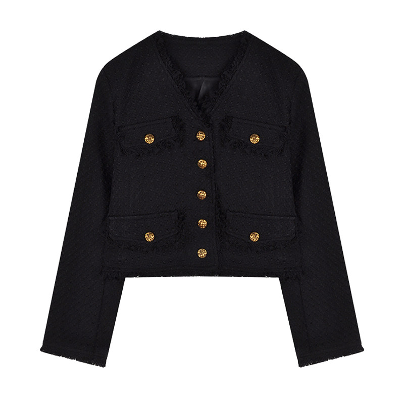 Ретро черная осенняя куртка, в стиле Шанель, яркий броский стиль, изысканный стиль