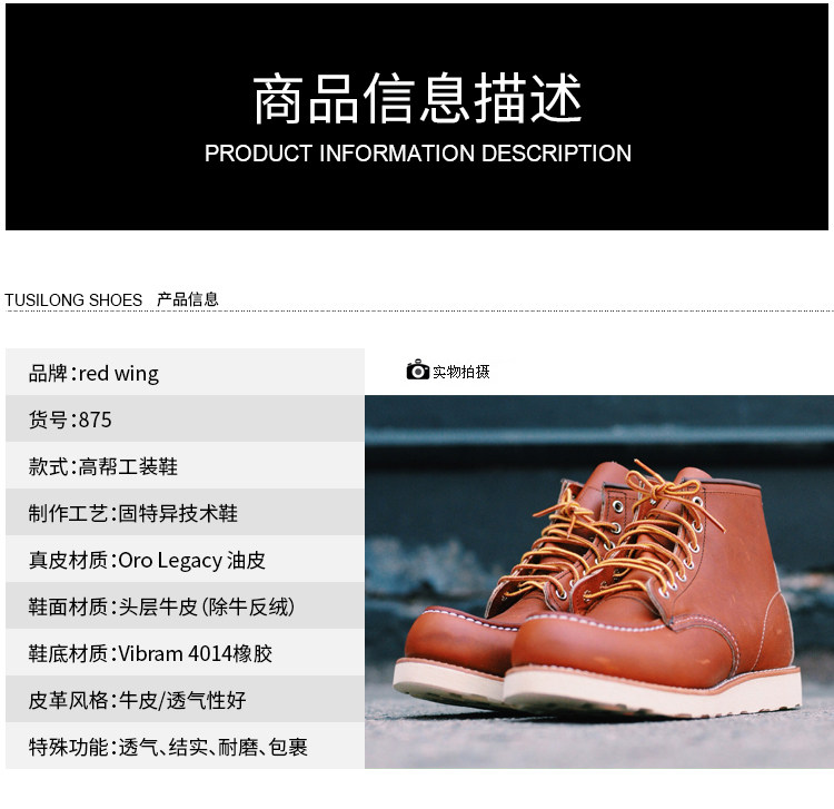 Американский счетчик подлинный Spot Red Wing Red Wing RW 875 8875 Стандартные собачьи рабочие ботинки для мужчин и женщин