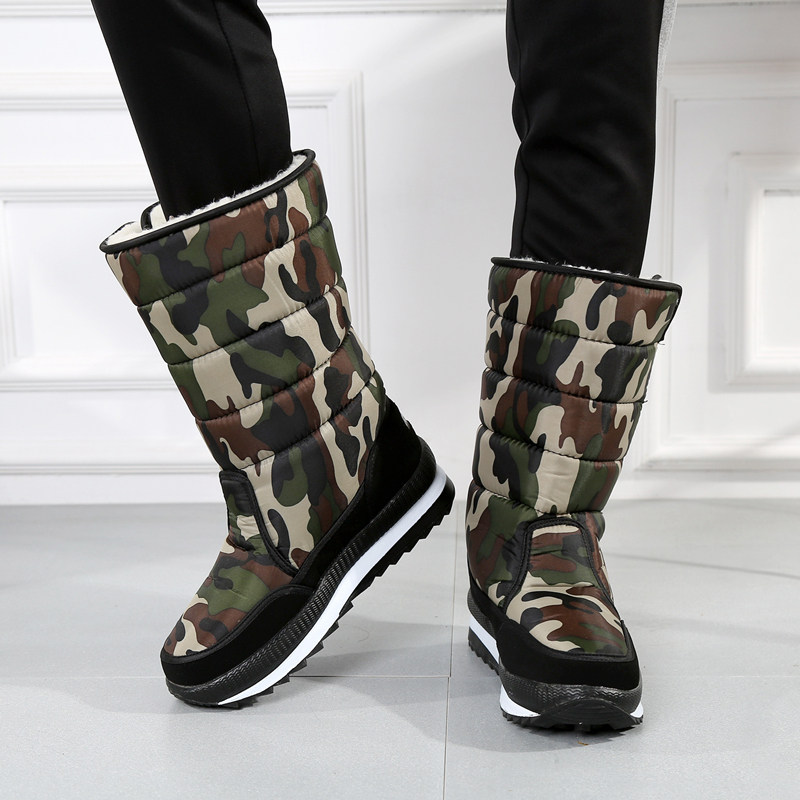 Камуфляжные нескользящие удерживающие тепло зимние высокие сапоги подходит для мужчин и женщин для влюбленных