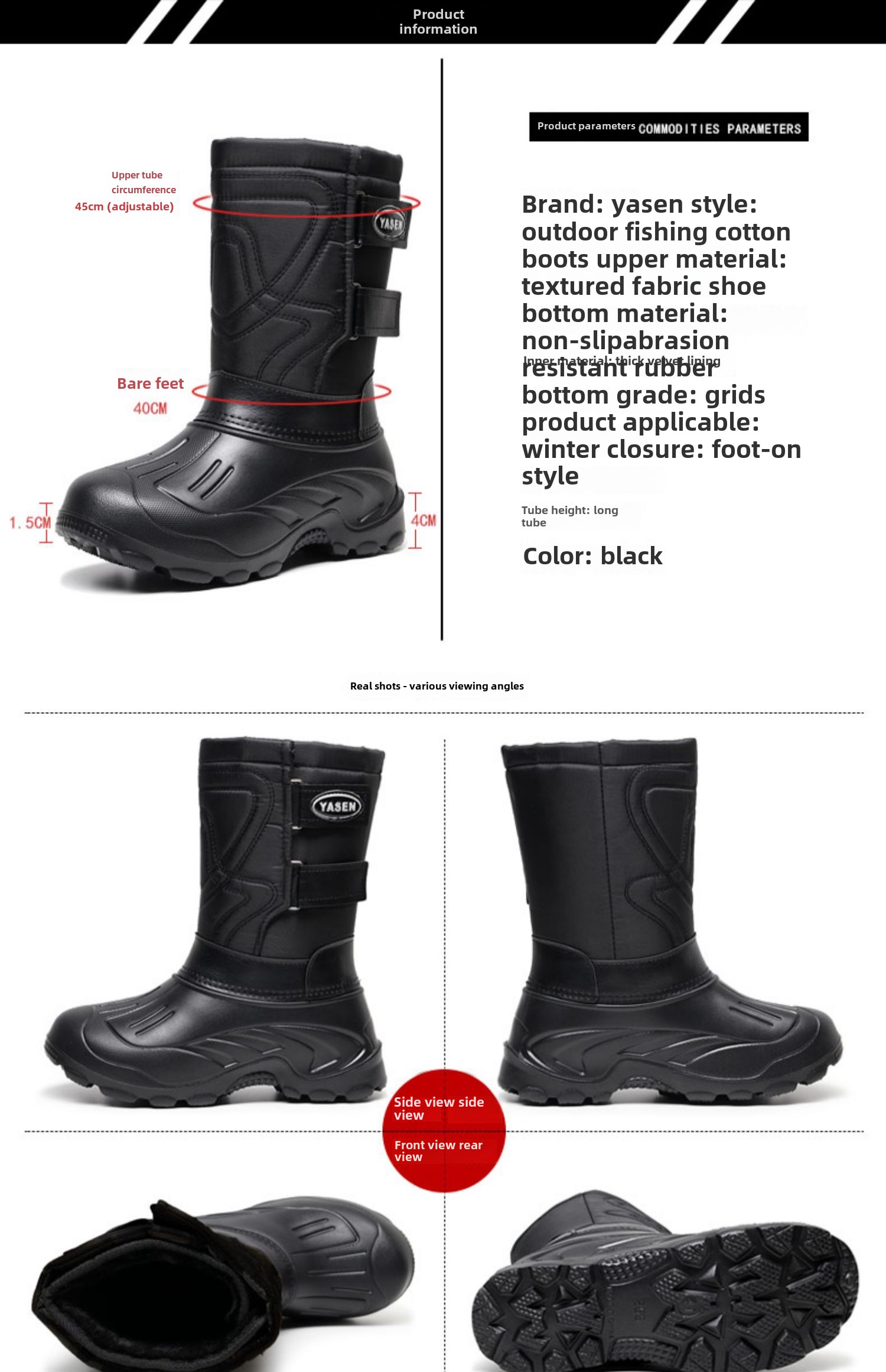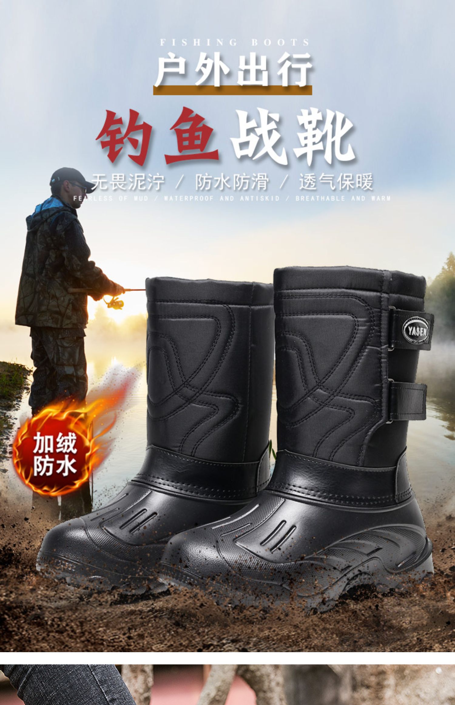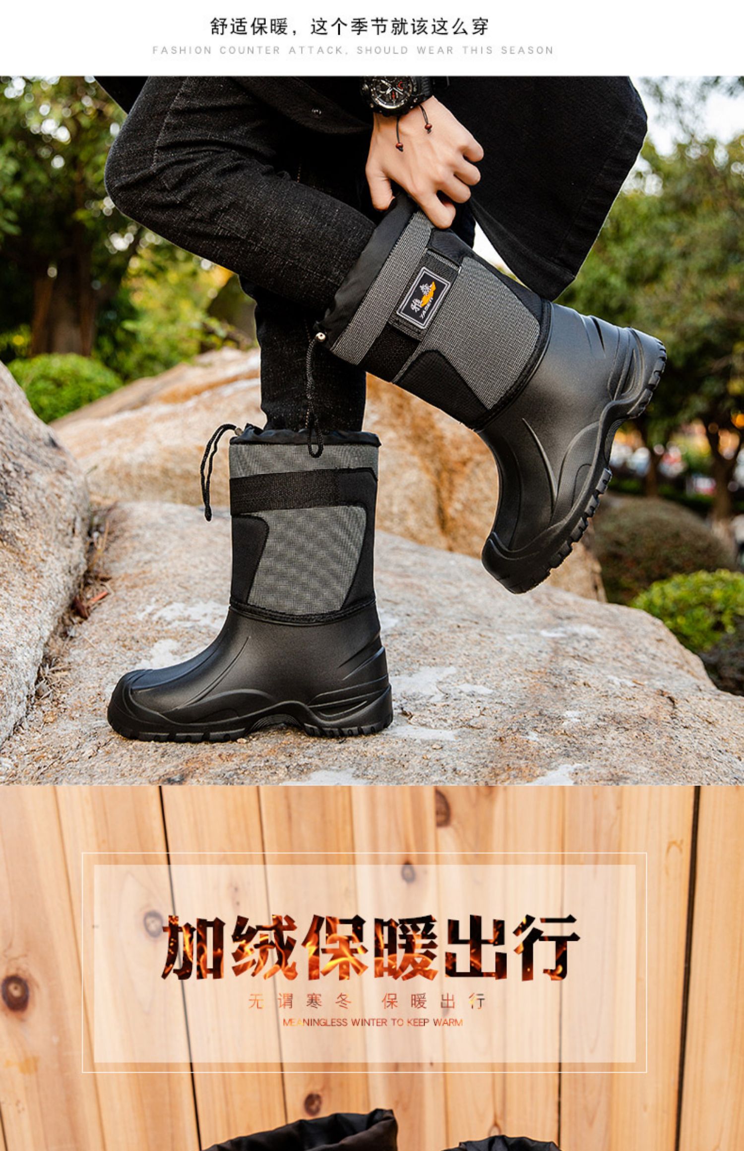 Утепленные мужские зимние высокие сапоги, удерживающие тепло нескользящие туфли