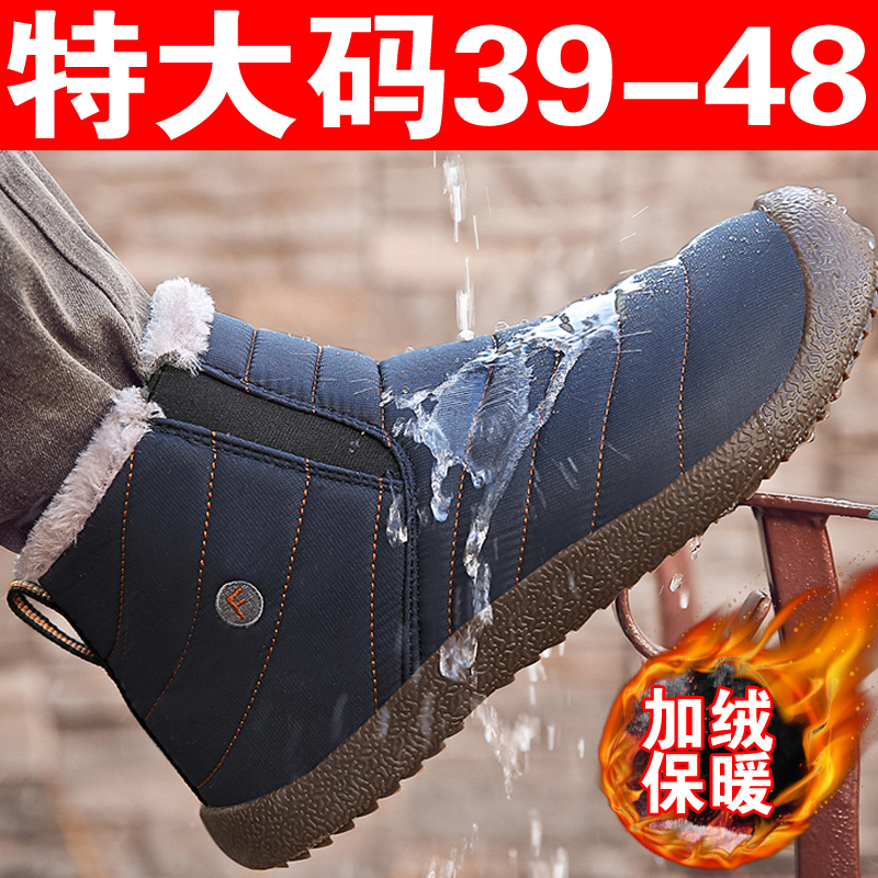Мужской большой размер 48 утолщен и повышенные снежные снежные водонепроницаемые 47 теплых зимних обуви плюс жирные 46 хлопчатобумажных ботинок плюс бархат 45