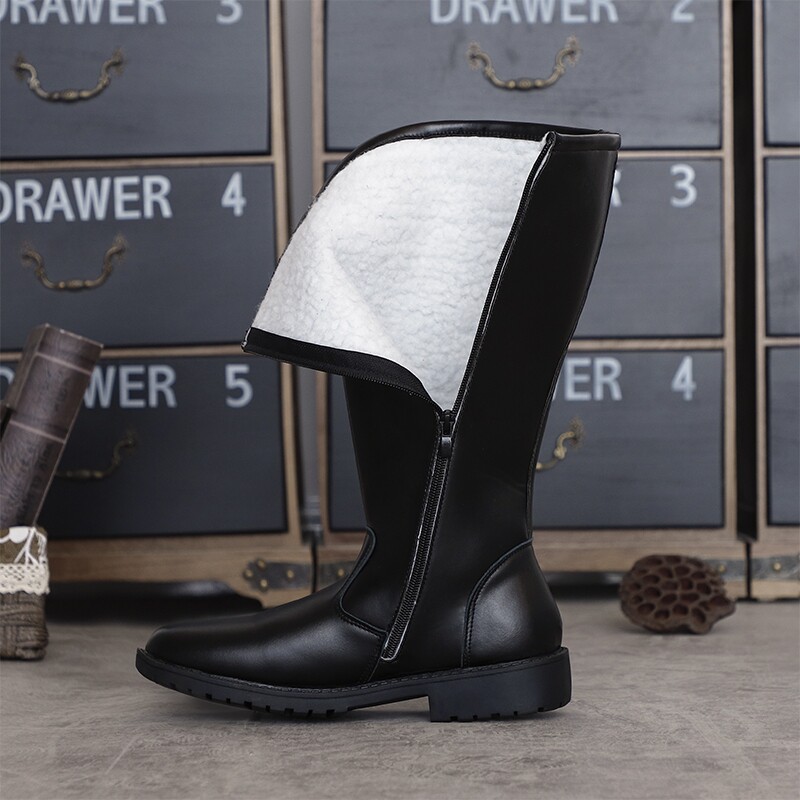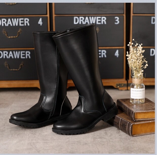Черные высокие сапоги подходит для мужчин и женщин, кожаные ботинки, из натуральной кожи