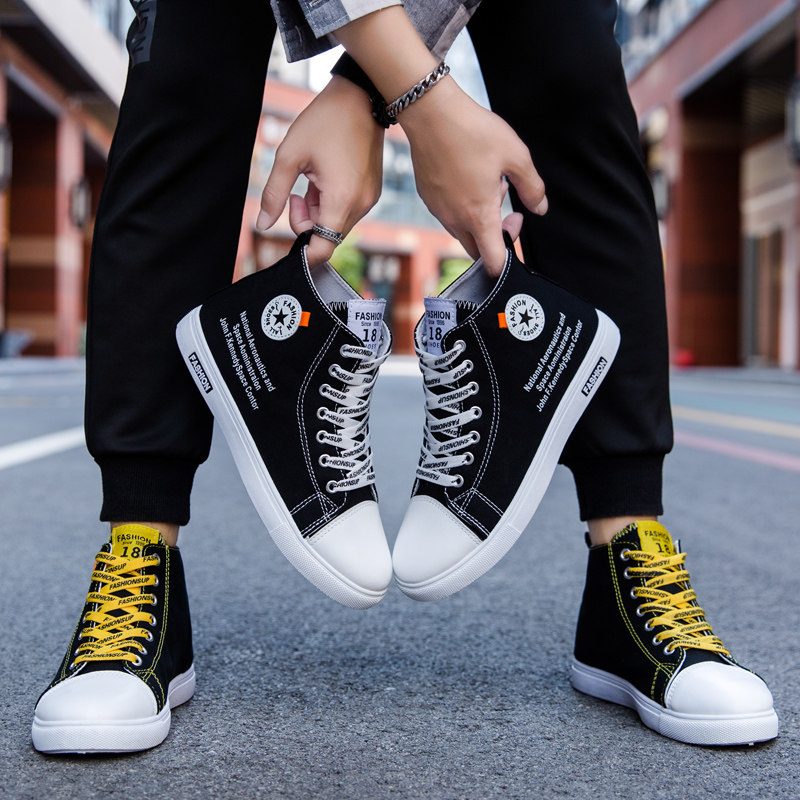 Высокие парусиновые туфли, мужская весенняя модная обувь, новинка 2023 года, модные универсальные кроссовки в корейском стиле, повседневная мужская обувь для студентов Gaobang