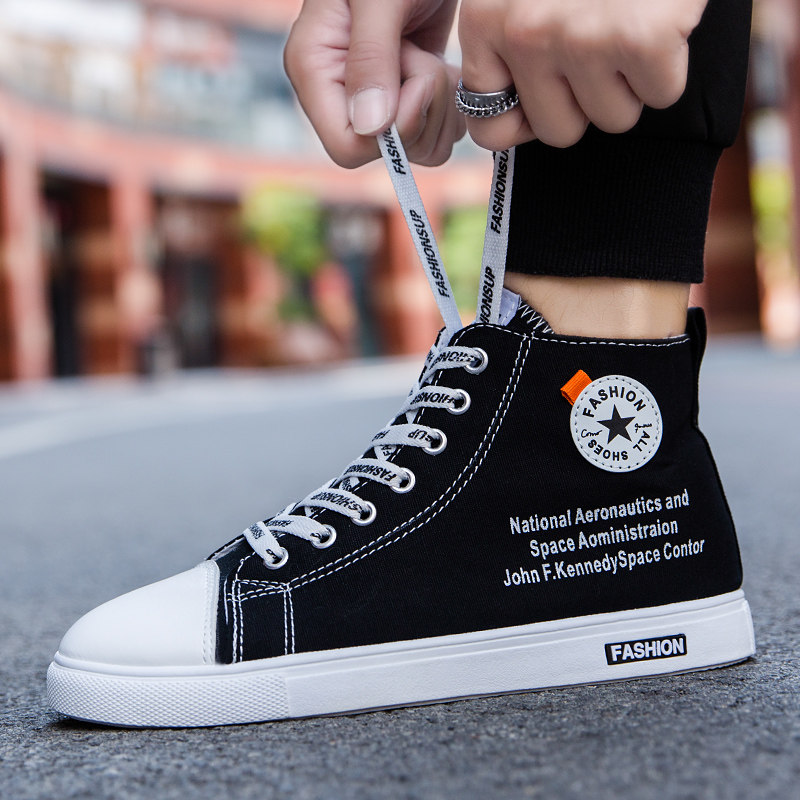 Тканевые высокие трендовые кроссовки, обувь для влюбленных, осенние, в корейском стиле