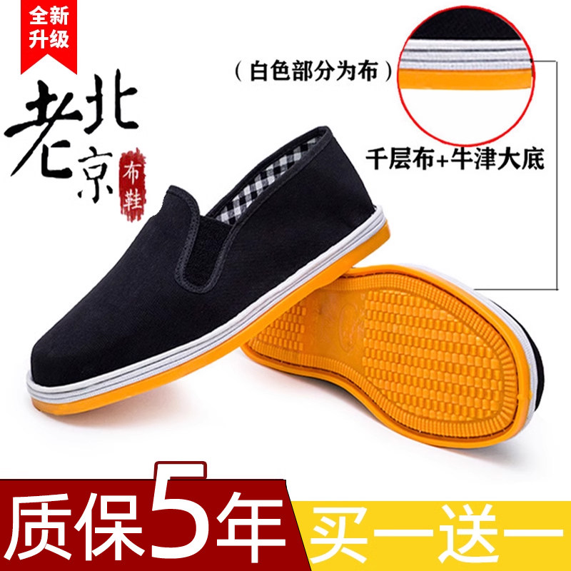 Туфли из тысячеслойной ткани Старого Пекина, парусиновая обувь среднего и пожилого возраста на сухожильной подошве, черные повседневные слипоны.