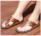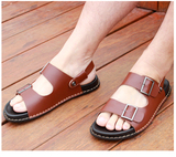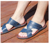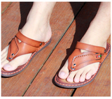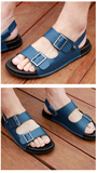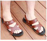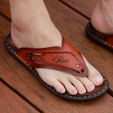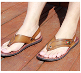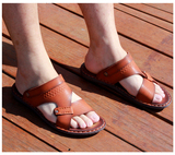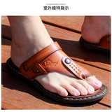 Летние нескользящие сандалии, пляжная обувь, слайдеры, тапочки, сланцы, из натуральной кожи, в корейском стиле