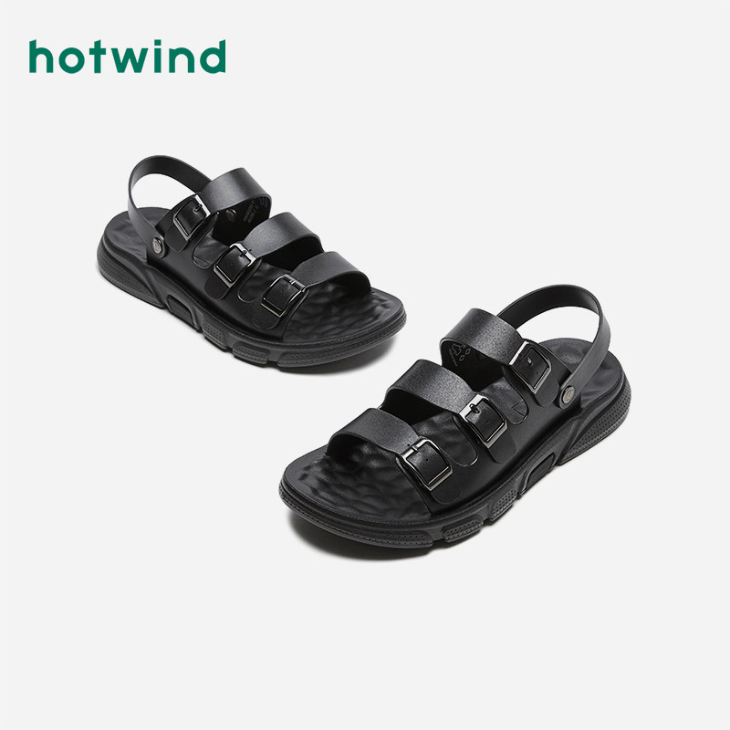 Hotwind/热风 Мужские старомодные трендовые черные пляжные летние универсальные босоножки для школьников и студентов, 2020