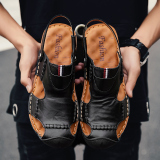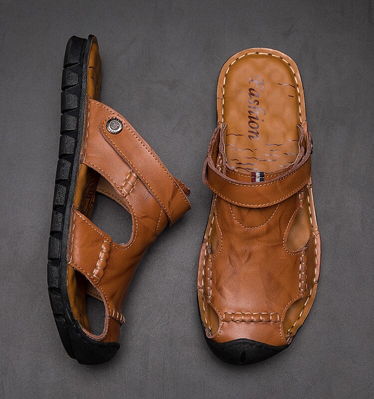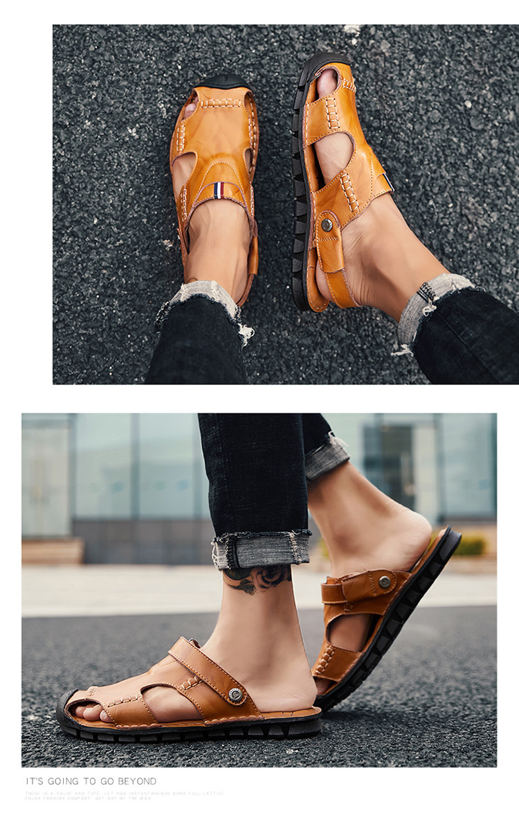 Сандалии, пляжные слайдеры, тапочки, коллекция 2022, из натуральной кожи