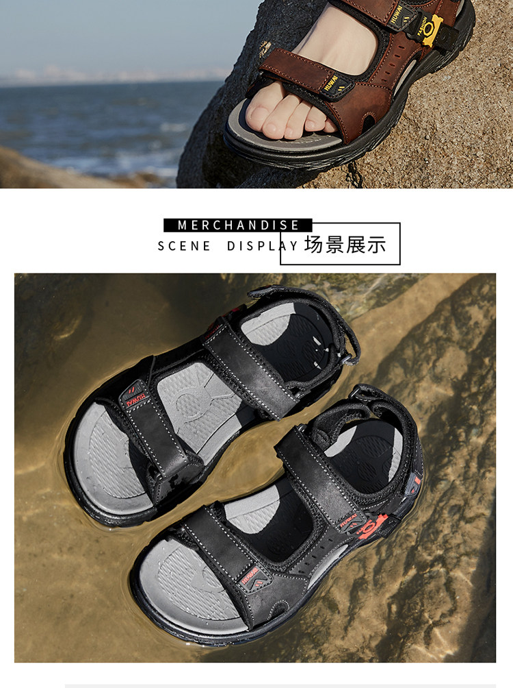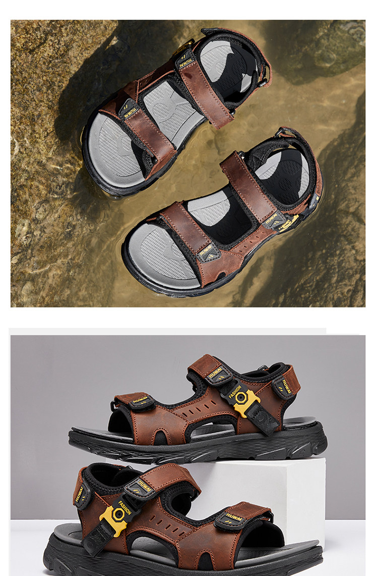 Мужские летние босоножки, спортивная пляжная обувь, из натуральной кожи