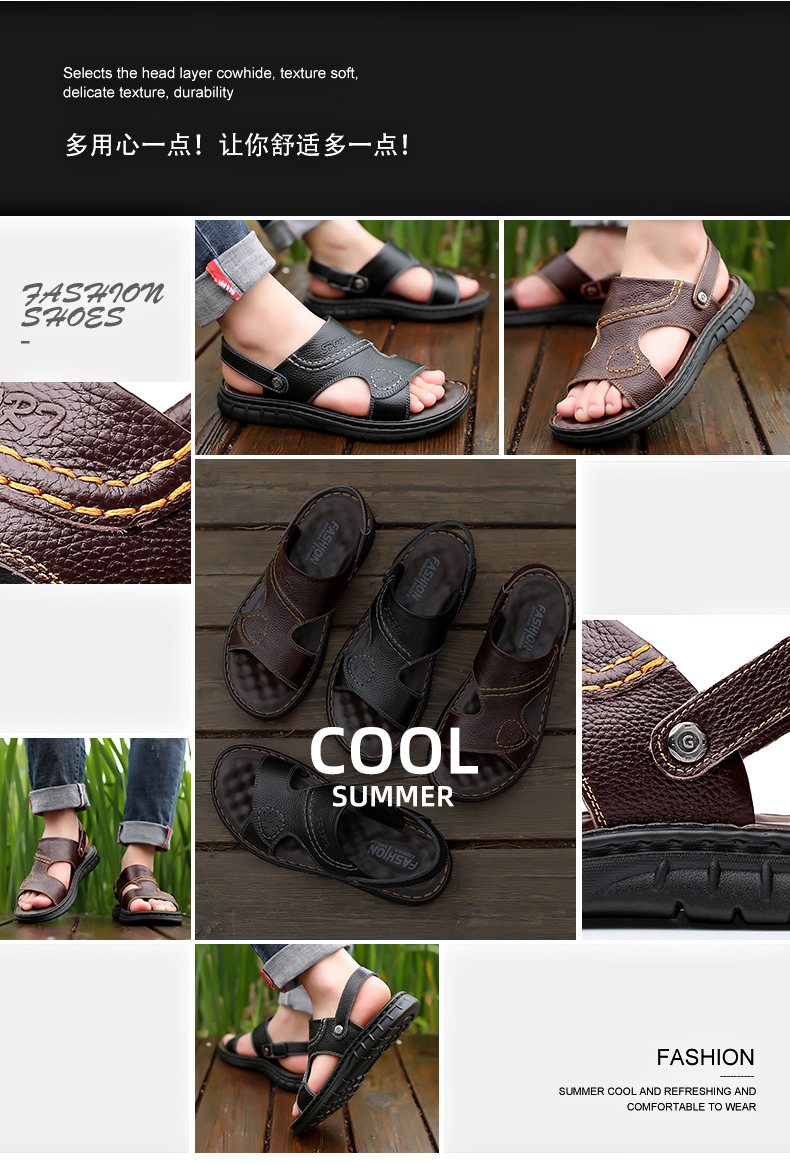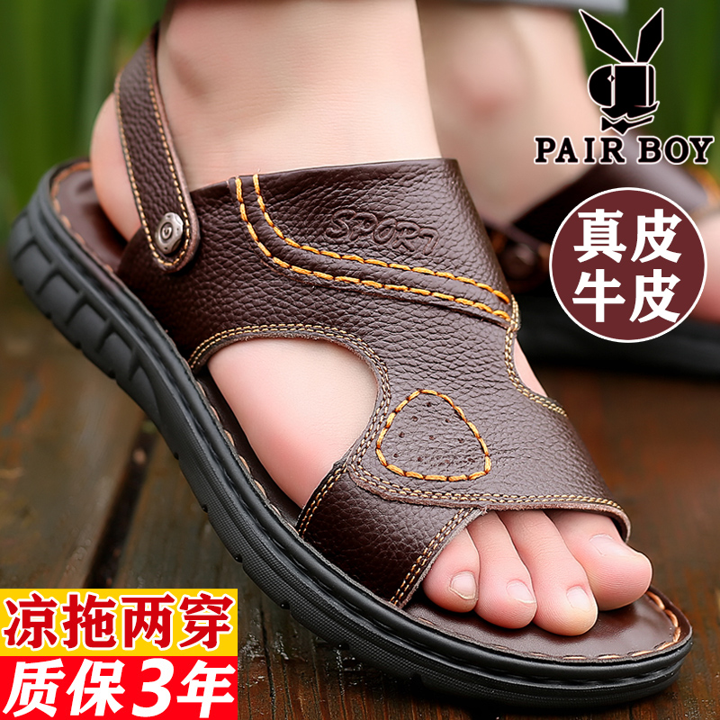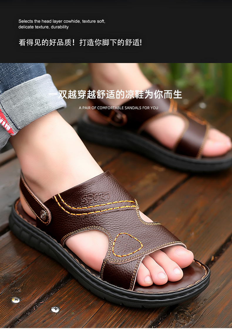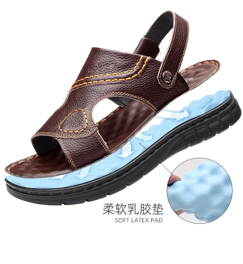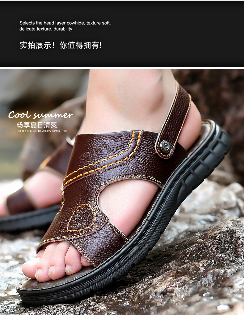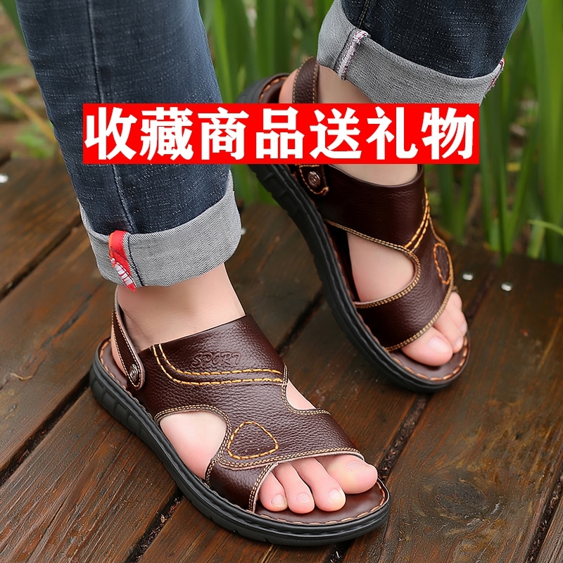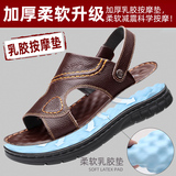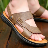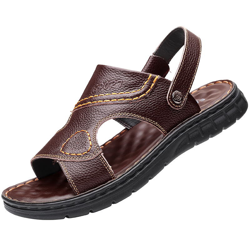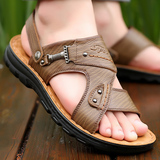 Мужские летние сандалии, дышащая пляжная пляжная обувь, слайдеры для отдыха, из натуральной кожи, мягкая подошва, большой размер